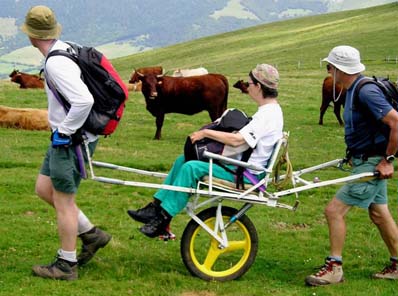 Qua praktijk was er een namiddag ‘conduite de groupe’ bij de rotsen van Freyr. Iedereen nam eens de groep op sleeptouw en ook de touwtechnieken kwamen nog eens aan bod. En het driedaagse opleidingsweekend in en rond Engreux was zoals verwacht intensief. Op zaterdag een navigatieoefening met IOF-kaarten, daarna mensen met een psychische beperking rondrijden met een ‘joelette’ (ook op modderige paadjes en serieus wat hoogteverschillen) en daarna van 22u ’s avonds tot 1 uur ’s nachts oriëntatie in ’t pietje pekke donker. Eén ‘balise’ was verkeerd geplaatst en wij maar zoeken… Op zondag een hele dag touwtechnieken op en rond de Rocher du Hérou in bijzonder vochtige condities (lees: het regende pijpenstelen). En op maandagmorgen nog ‘secourisme’ (EHBO) met daarna een lange autorit terug naar huis.