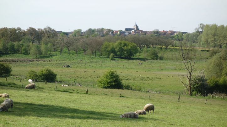 Het duurt nog even voor de drukte rond Geraarsbergen helemaal verdwenen is. We lopen langs uitgestrekte akkers en velden, waar we ons al snel in het gras neervleien voor een lekkere mattentaart…die…we…toch…maar…moeizaam…helemaal…binnenduwen. Ook onze getrainde magen raken erdoor gevuld.