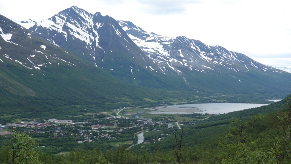 Ons postpakket naar Lyngseidet is verstuurd, in de rugzak zitten twee gasbidons en onze lunch, er is zelf nog tijd voor een koffietje voor we klokslag 10u de bus naar Nordkjossbotn opstappen. De zon schijnt op het gezellige centrum van Tromsø, de temperaturen zijn zacht, een goed begin.