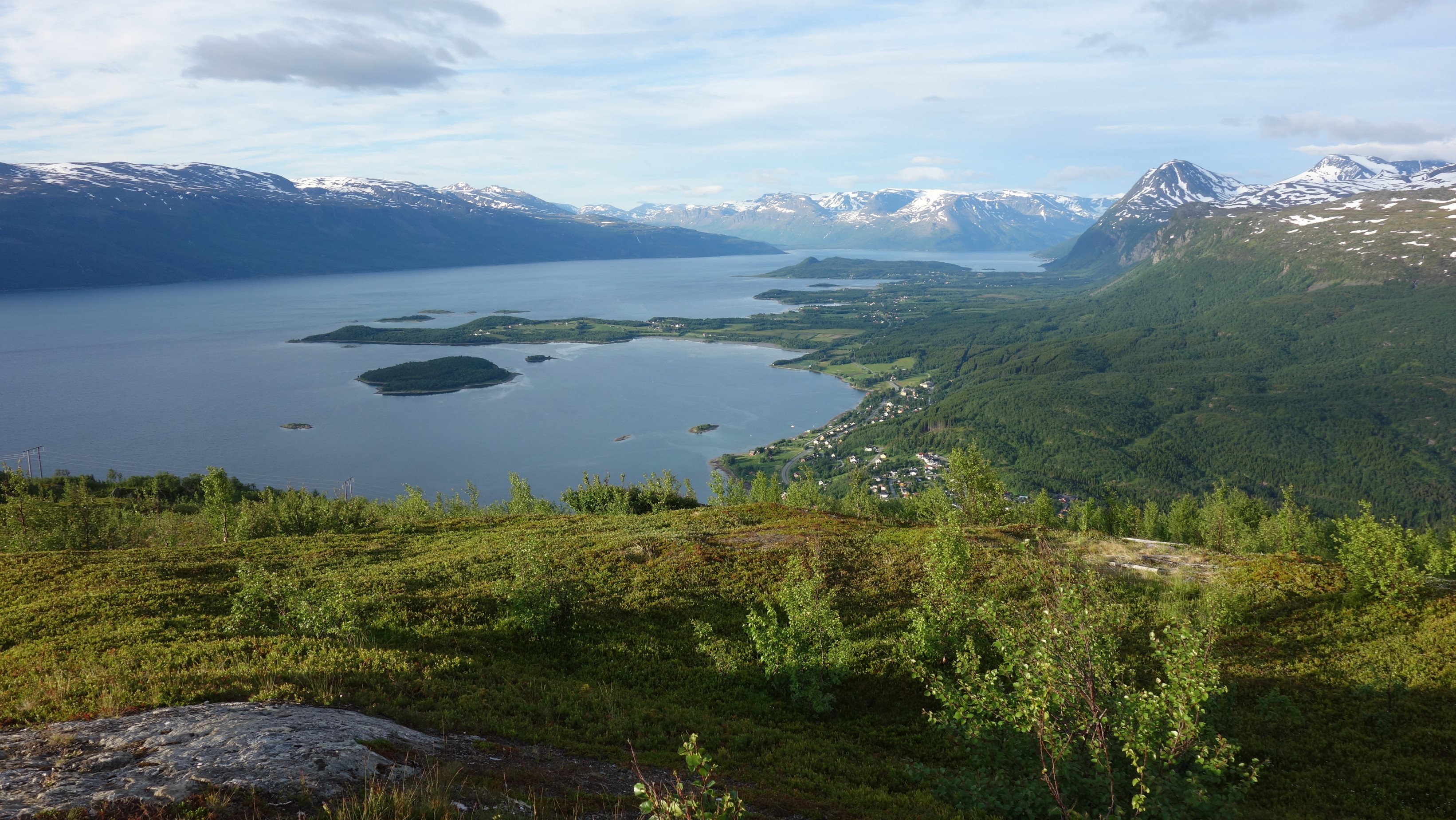 Lyngseidet ligt diep beneden ons, in een groene en bosrijke baai. Een ferry vaart heen en weer tussen het dorp en Olderdalen. Vandaag hoeven we niet te schuilen in de Skihytta, één van de weinige onbemande hutten in dit gebergte.