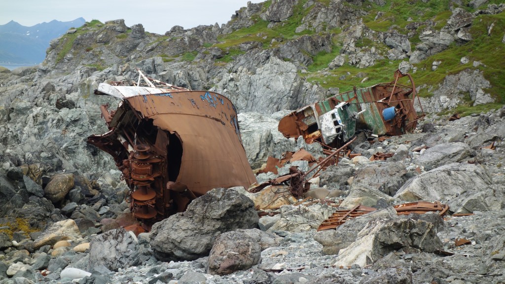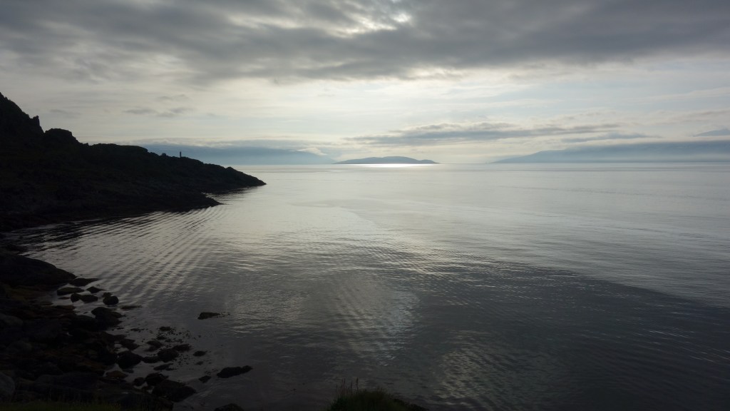 Het is zoeken naar een geschikte bivakplek. Ik ga verder de kust verkennen en stuit op een wrak van een schip die letterlijk op de rotsen te pletter is gevaren. De romp is gewoon in twee gebroken. Een visarend vliegt voorbij. De avondzon zorgt voor wat romantiek. Het voelt aan als een bijzondere plek.