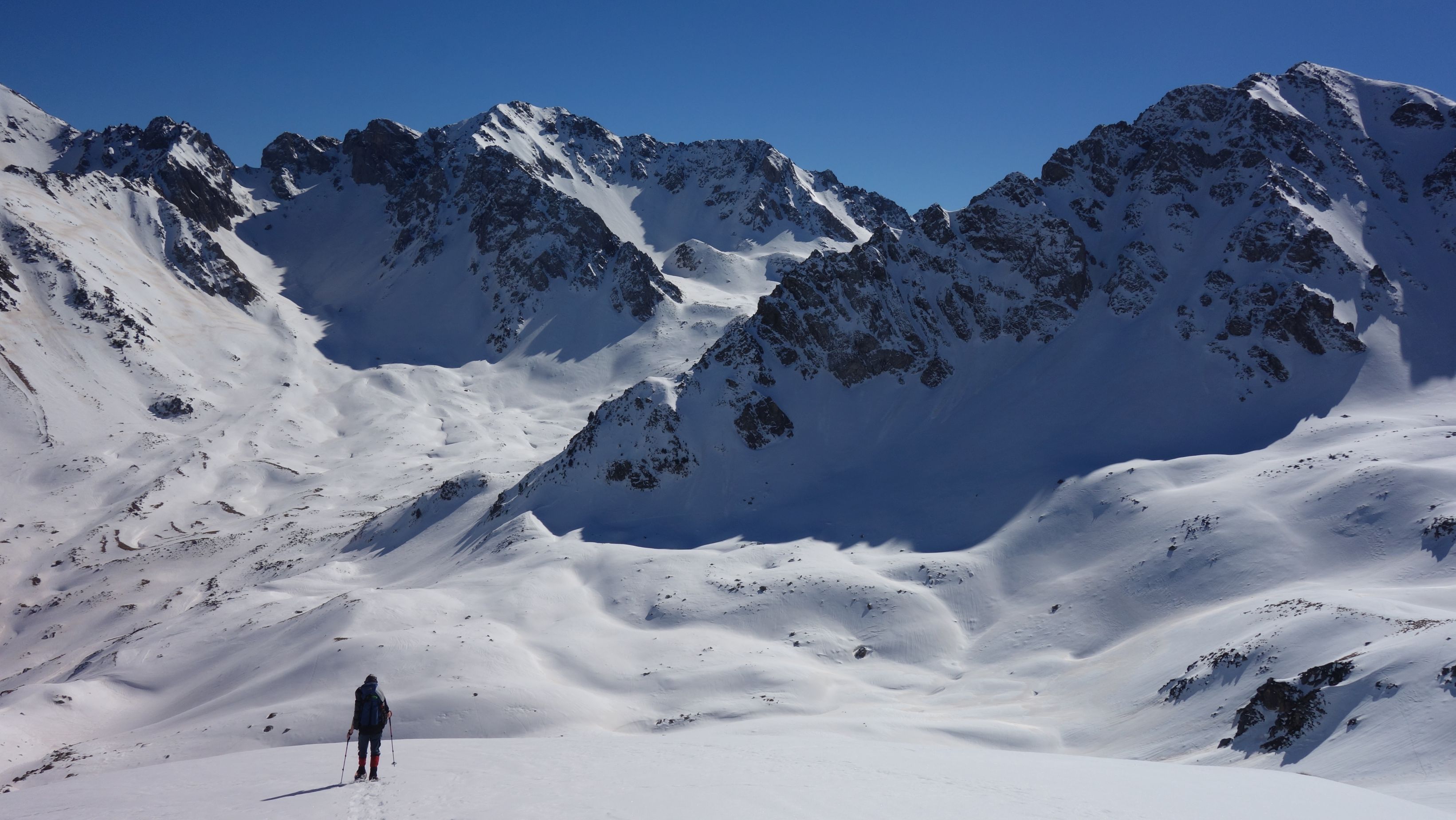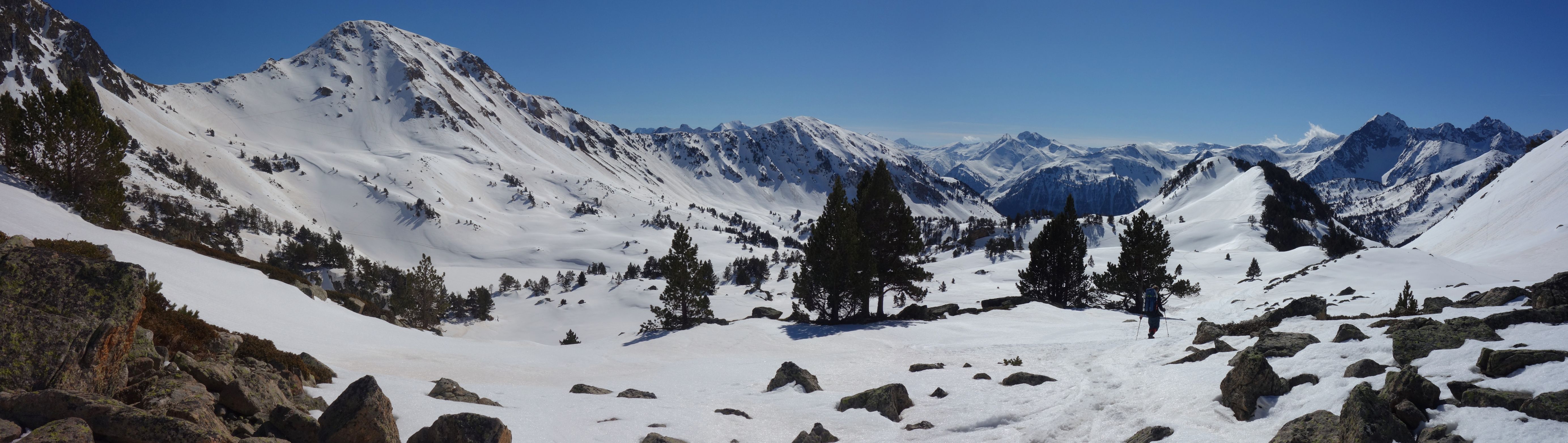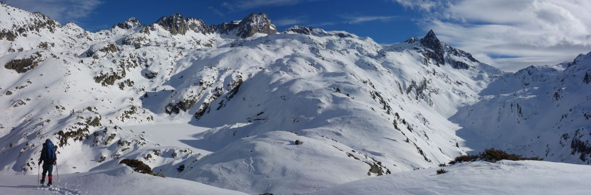 We stapten deze tocht van 26 februari tot en met 3 maart 2017. Het sneeuwdek is in dit gebied meer dan behoorlijk maar de weers- en sneeuwcondities zijn erg schommelend, vooral omwille van de Atlantische storingen. De temperaturen gaan op en neer en regen en sneeuw wisselen elkaar af. Tijdens onze 6-daagse viel het allemaal best mee. We hadden overwegend mooi weer. Op het eind zijn we tijdig afgedaald om een dag met veel verse sneeuw en stijgend lawinegevaar te vermijden. Februari en maart lijken me hier de beste maanden om op stap te gaan.