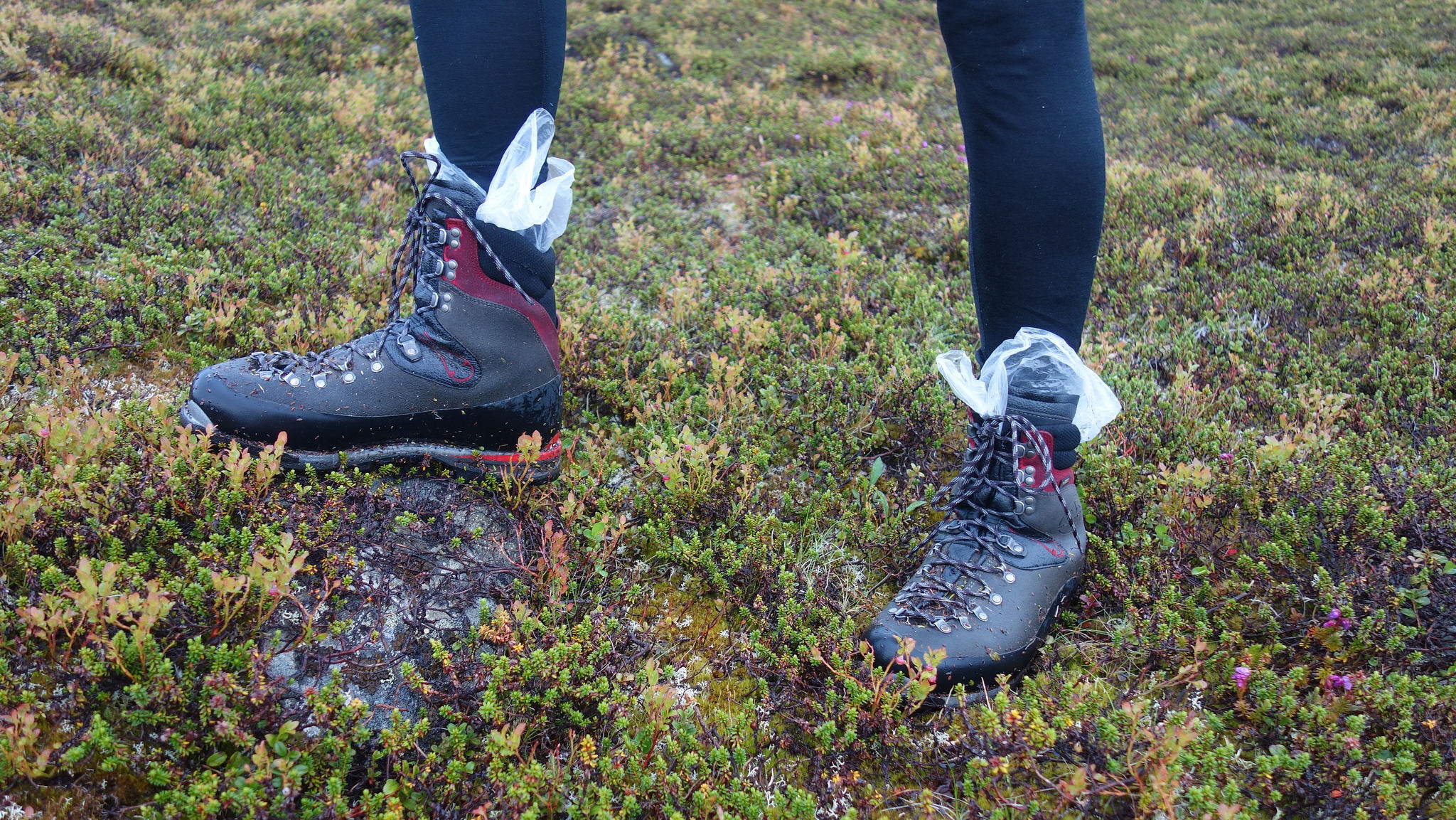 Wat betreft trailrunners blijft mijn mening verdeeld. Ik heb er al diverse keren mee in het gebergte gestapt, ook op rotsige paden en blokkenvelden, maar na een 1 jaar intensief gebruik (hiken, trailrunnen) is dit schoeisel al aan vervanging toe. Voor het stevigere werk kies ik dus nog altijd voor een paar stevige leren bergschoenen, al hebben die ook hun beperkingen naar waterdichtheid toe. In de Lyngen Alpen vorig jaar liep ik nagenoeg 14 dagen met natte schoenen rond. Waxen kan het leer een tijdje waterafstotend houden maar sneeuw, nat gras en zompige ondergrond doen dat waxlaagje al snel teniet.