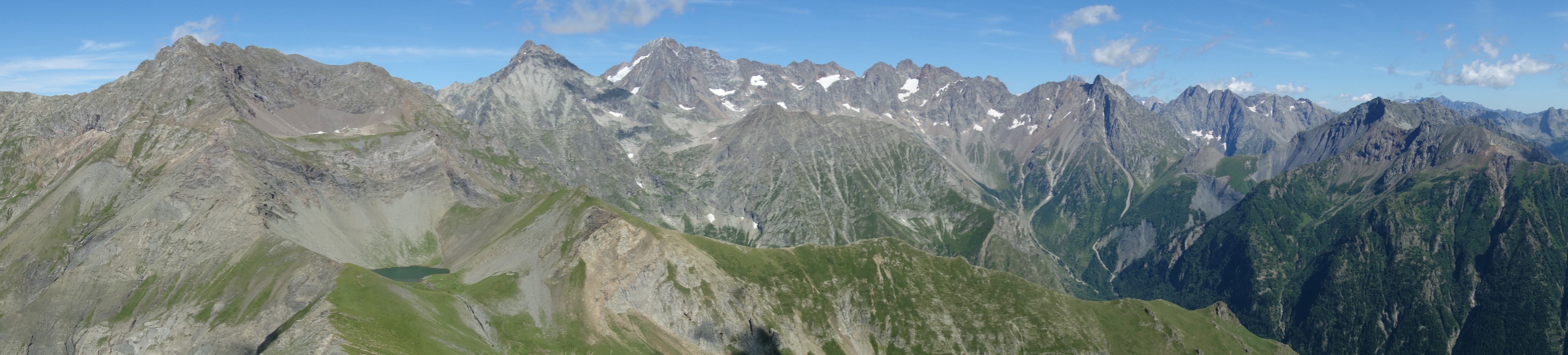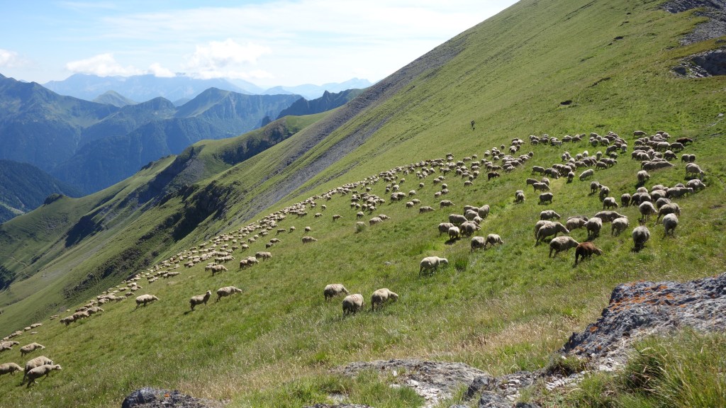 Vanaf de Col de la Romelou is ons eindpunt al in zicht: Lac Labarre. We hebben nog wat tijd over, dus pik ik samen met 4 andere deelnemers nog een topje mee: Tête de Rame waar we volop genieten van het panorama over de Ecrins. Onderweg maken we kennis met een herderin die meer dan 1.300 schapen op de flank doet grazen.