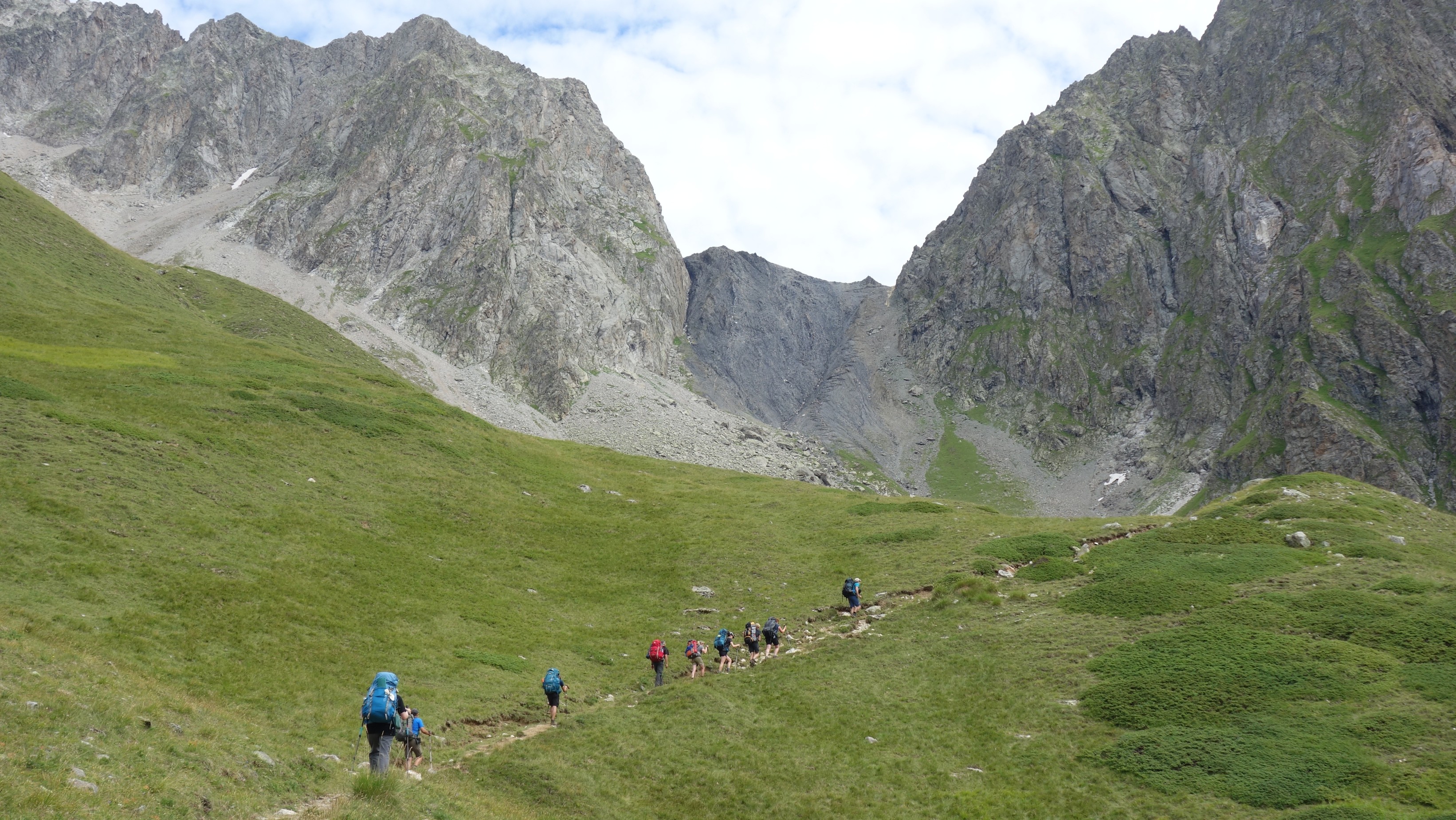 Een kathedraal van bergpieken, gletsjers en steile rotswanden, zo kan je dit bergmassief het best omschrijven. Dit gebied temidden de Franse Alpen trekt daarom veel alpinisten aan, maar ook bergwandelaars kunnen er hun gading vinden. De Tour des Ecrins loopt rondom het massief en bivakkeren voor één nacht is er toegelaten. Yanick Bos stippelde voor Hiking Advisor in het kader van zijn afsluitende stage als Instructor Mountain Walking & Trekking een 5-daagse lustocht uit aan de westelijke zijde van het massief. Ik mocht mee als mentor, samen met 8 enthousiaste deelnemers.