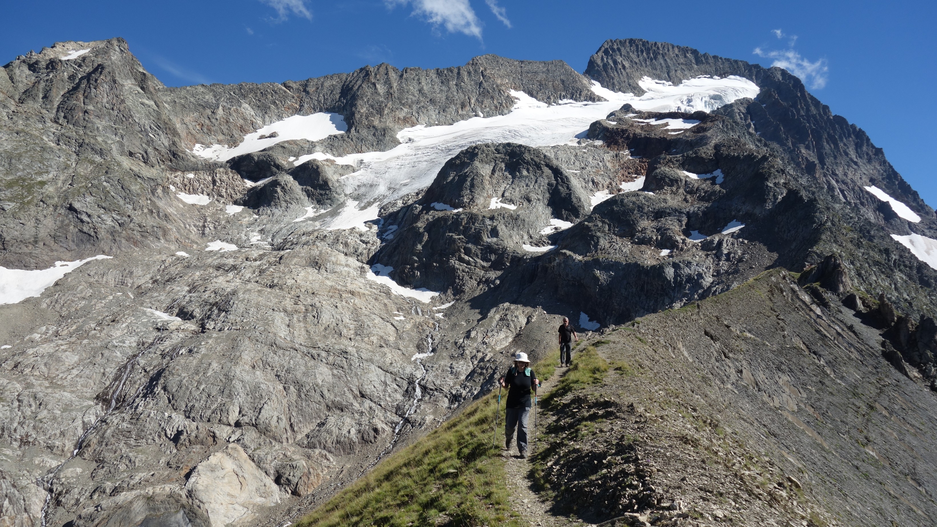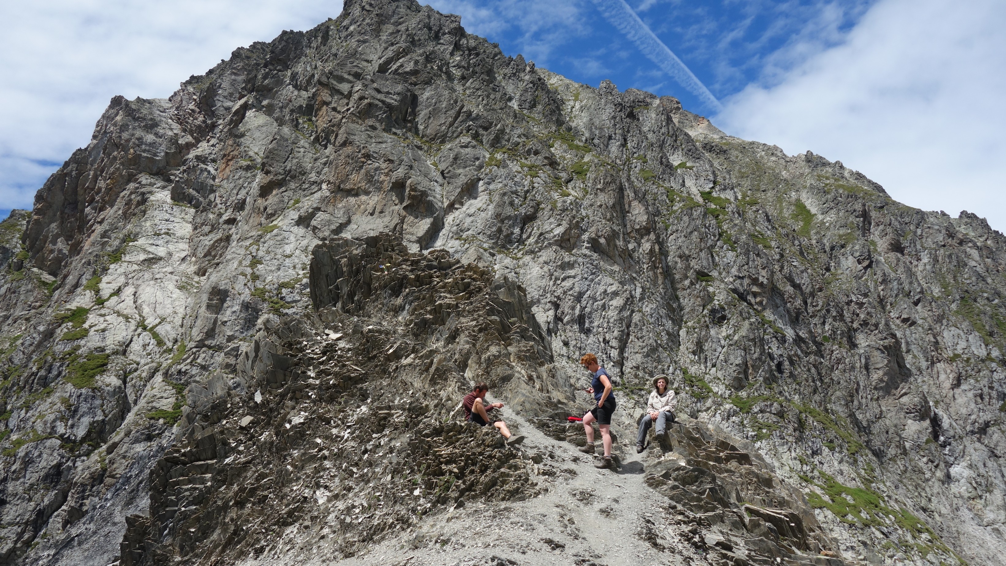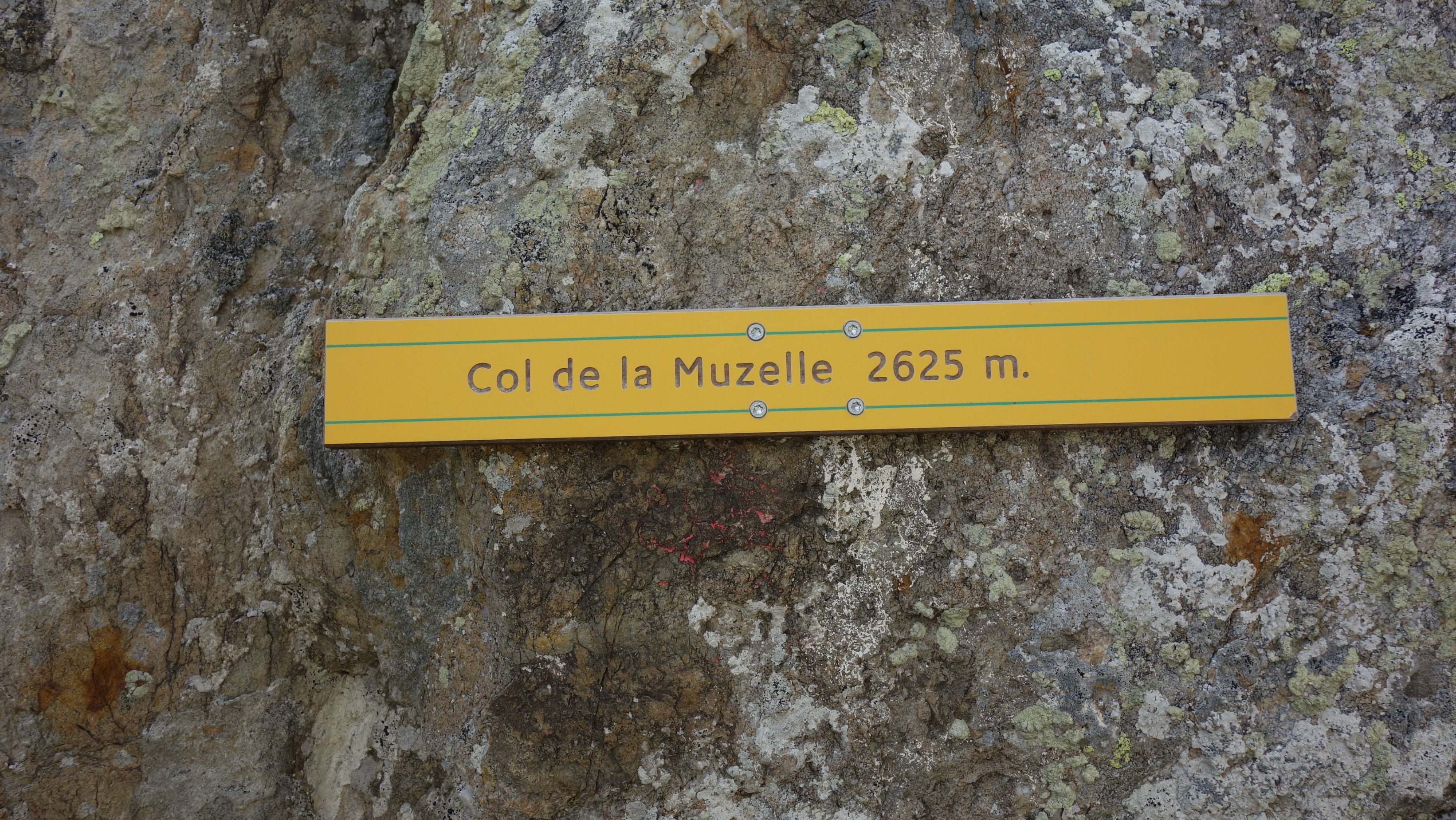 Met een lange klim in het vooruitzicht, komt het er op aan om niet te hard van stapel te lopen. De Col de la Muzelle is al van ver zichtbaar, de pas ligt tussen twee rotsen in. Vooral het laatste stukje is wat moeilijker, zigzaggend lopen we door steenpuin omhoog. De beloning is groot, het uitzicht is best wel indrukwekkend aan beide zijden van de col.