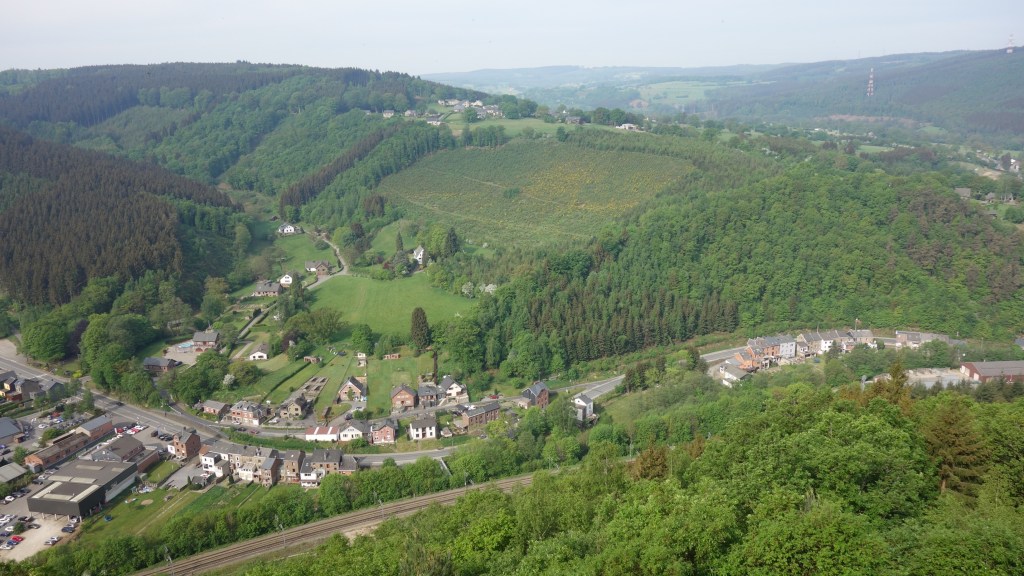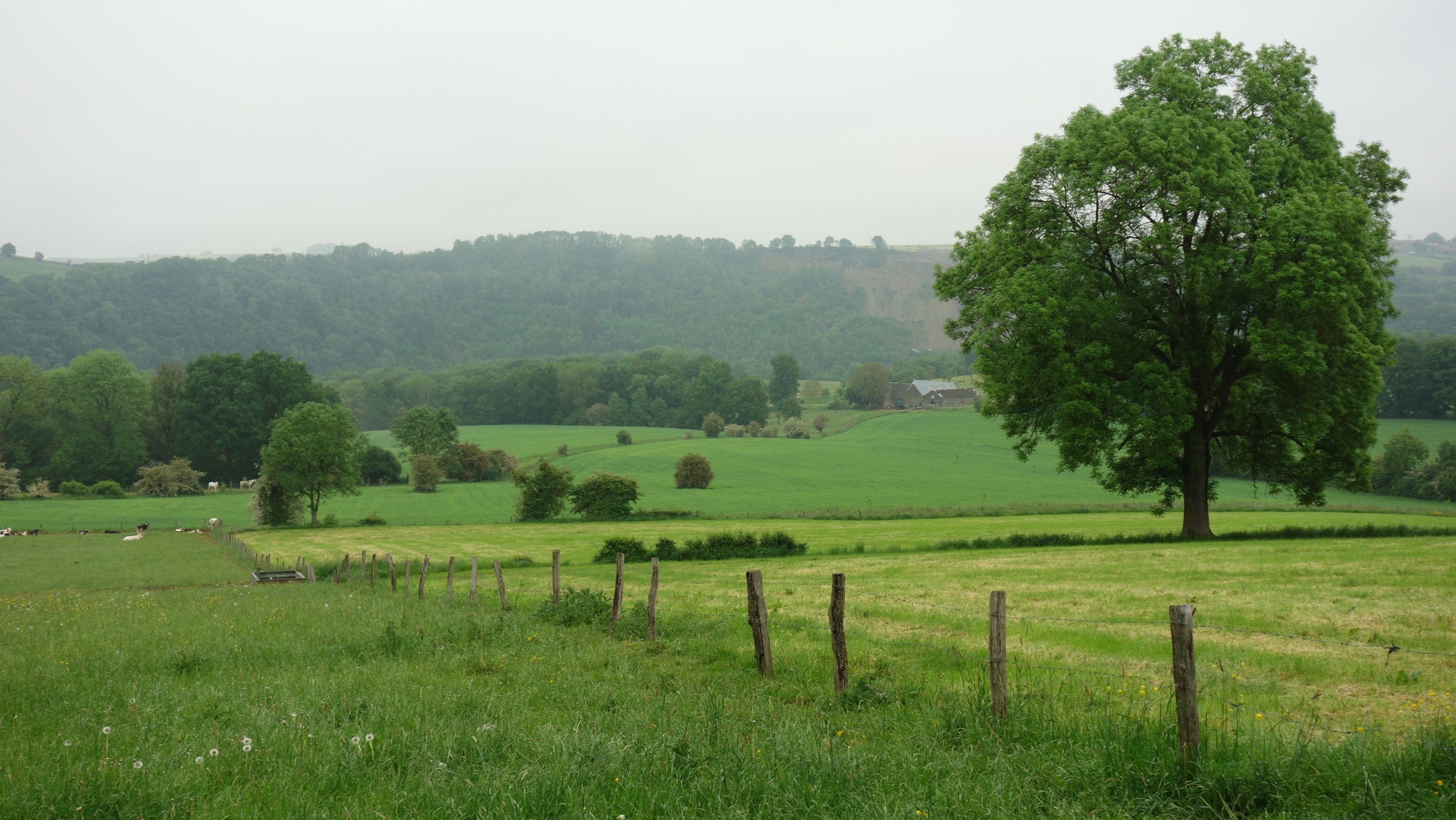 Bij het uitkijkpunt van Croix de Septroux is het droog voor de lunch. Het landschap ziet er erg bucolisch uit als we over de heuveltop lopen naar Rivage. Een laatste steil paadje naar beneden, en we staan aan de monding van de Amblève in de Ourthe. We zijn mooi op tijd voor de trein terug huiswaarts.