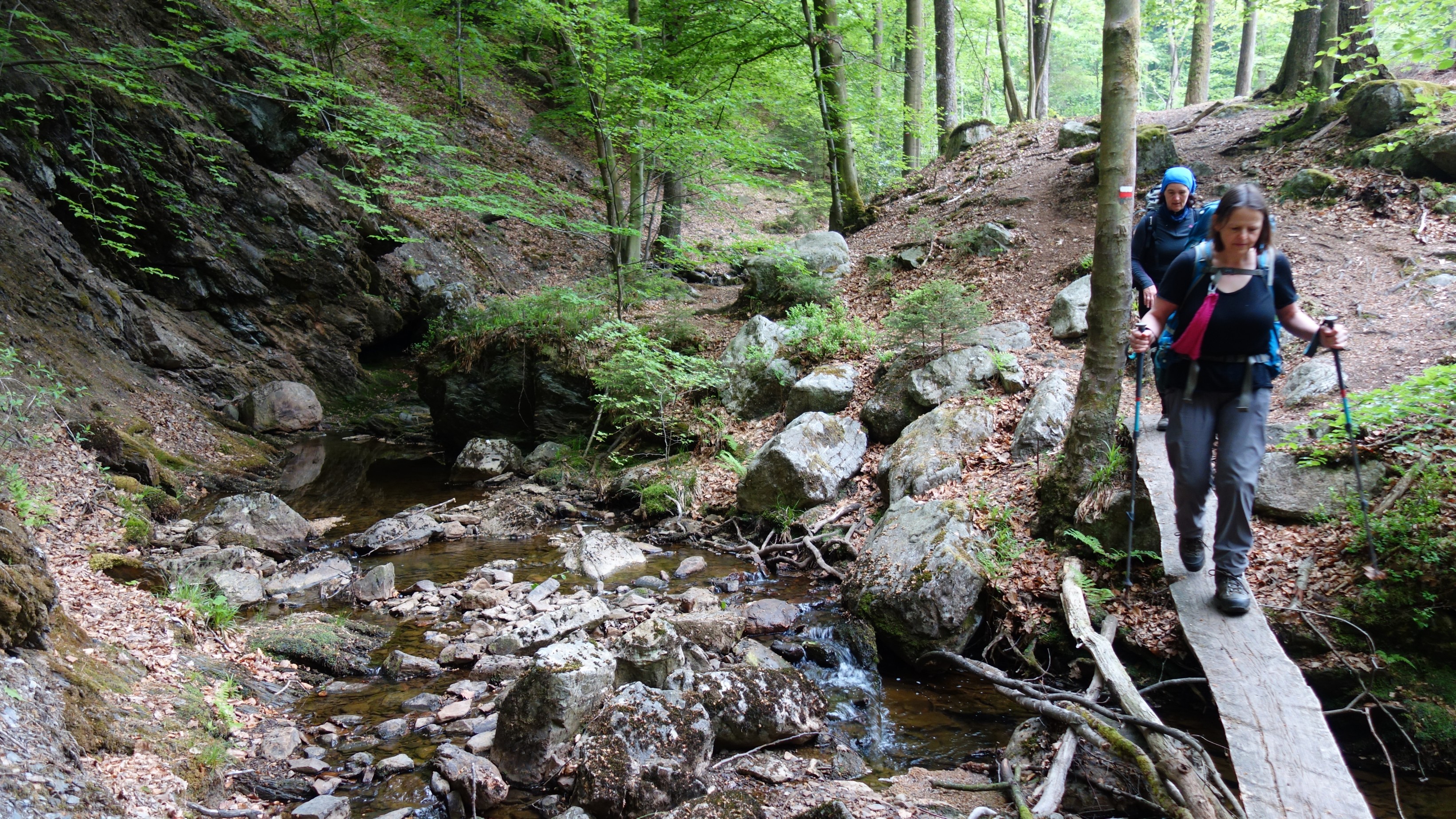 We steken de rivier over en vervolgen langs de oever. De grote kwartsietblokken in de Fonds de Quarreux zijn getuigen van landverschuivingen uit een ver verleden, maar in de Ardennen is een legende nooit ver weg…