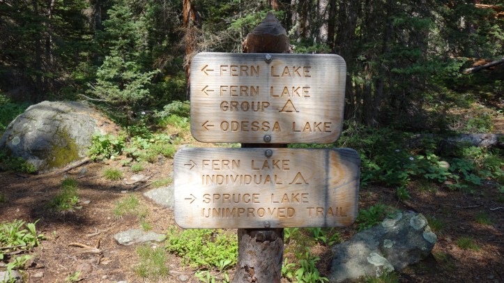 Een stralend blauwe hemel en we ontbijten buiten. Het vakantiegevoel zit er nu toch een beetje in. Vanaf de camping trekken we via een rustig asfaltbaantje naar Fern Lake Trailhead. Het ene bergmeer na het andere zal vandaag de revue passeren: Fern Lake, Odessa Lake, Two Rivers Lake, Bear Lake en Nymph Lake.
