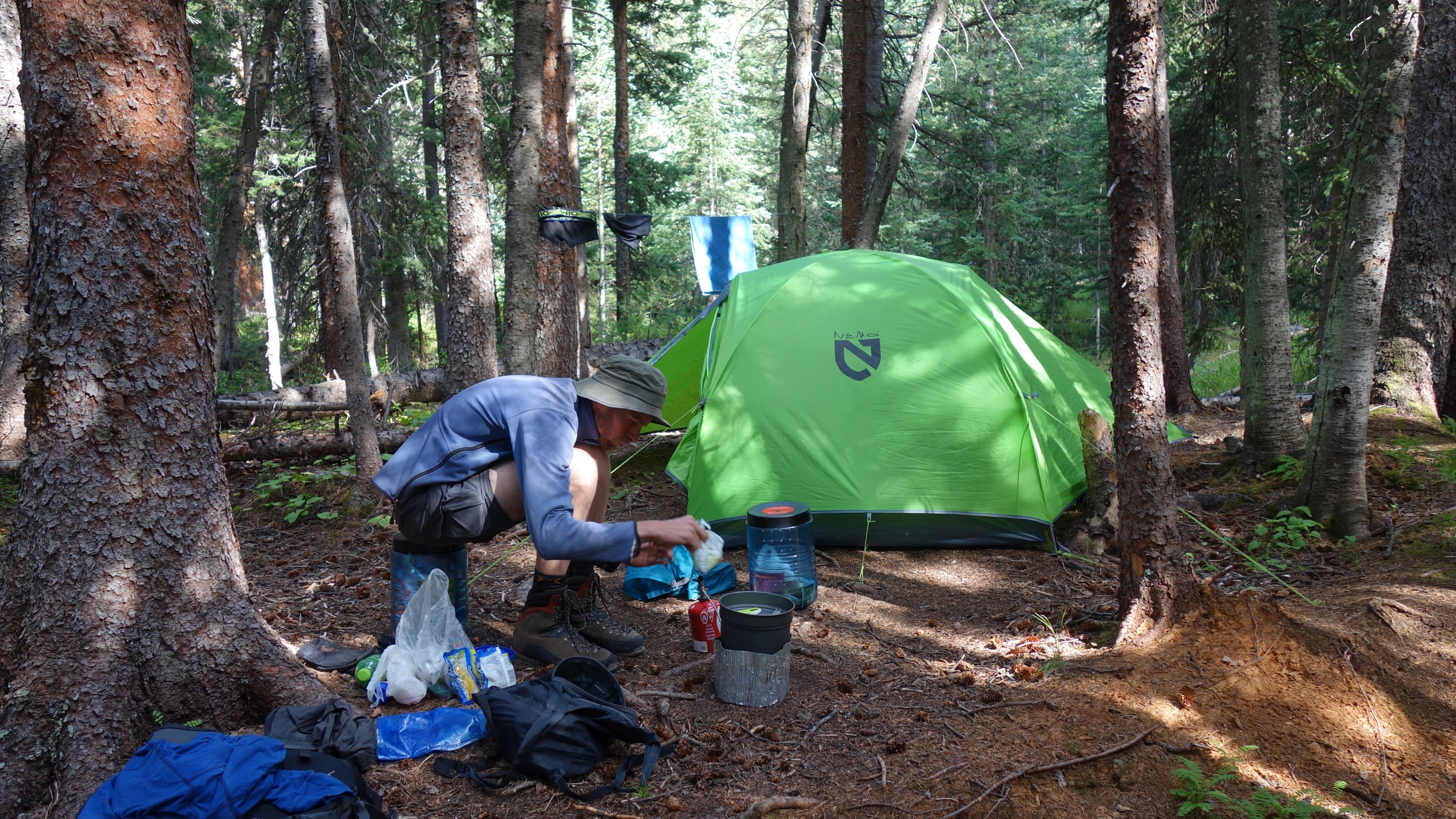 Reeds vroeg op de namiddag zetten we de tent op nabij East Snowmass Creek. In de buurt zoeken we een schaduwrijk plekje om wat te lezen, want in de zon wordt het zelfs op ruim 3.600 meter behoorlijk heet. In de verte zien we de rookpluimen van een bosbrand. Een vaak voorkomende fenomeen in het hete binnenland van de VS, en de moedige firefighters die natuur en bewoning proberen te beschermen, worden hier dan ook op handen gedragen.