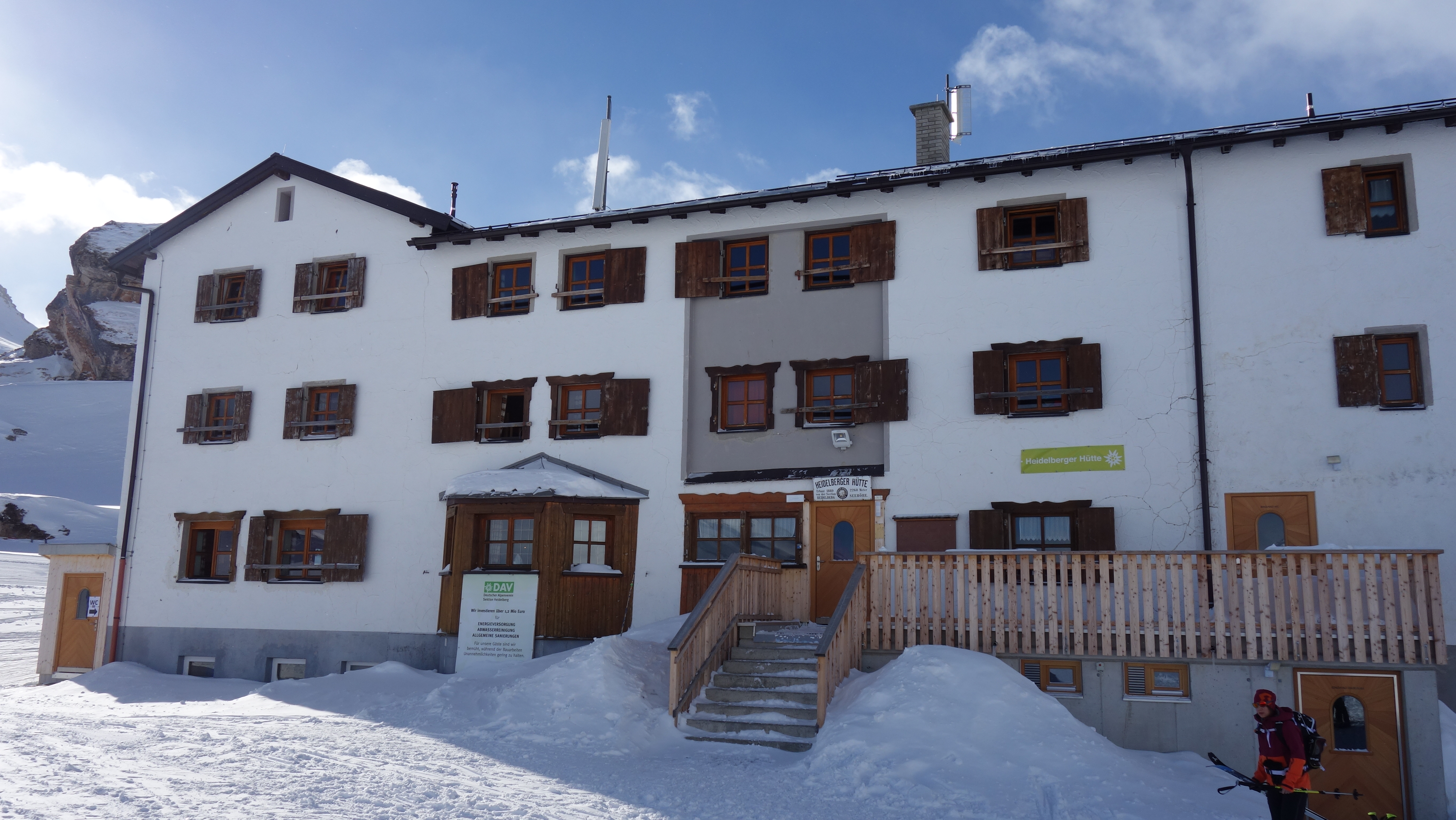 De volgende dag biedt geen beterschap. Terwijl de groep samen met Ivo een serieuze skitoer gaat doen, ga ik de vallei in mijn eentje verder verkennen. Een ganse dag in de berghut mokken, is niet aan mij besteed. Stijgen gaat vlot, bij het afdalen hou ik de vellen aan maar is het heel behoedzaam afdalen. Ik kan geen extra druk op mijn knie zetten en ben er niet gerust op. Al is een terugkeer aangewezen, ik wil Ivo toch zo lang als mogelijk van zijn stage laten genieten. Ook bij hem verlopen de afdalingen niet zonder diverse valpartijen maar hij blijft gemotiveerd. Terwijl de groep op de derde dag naar de Jamtalhütte doorsteekt, kan ik met de pistebully mee naar Ischgl. Met de bus gaat het dan naar Galtür waar ik terug op toerski’s naar boven trek. De wind wakkert serieus aan en de laatste stijgingsmeters kruipen in de kleren. Als ik alleen in de hut toekom, zakt de moed me in de schoenen. Zo voelt het dus om het avontuur niet mee te kunnen beleven…