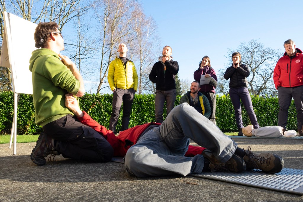 Tijdens mijn parcours tot bergwandelgids passeerden al diverse eerste hulp-cursussen de revue, bij het Rode Kruis, de Klim- en Bergsportfederatie, Outdoorschool én de Club Alpin Belge. Outward Bound Belgium biedt in samenwerking met Wilderness Medical Associates, een Amerikaanse organisatie, een opleiding tot Wilderness First Responder aan. De lesgevers komen uit de (para)medische wereld, de bergsport en de brandweer. Voertaal is het Engels maar aangezien 2 van de 3 lesgevers Nederlandstalig zijn, kan er ook vertaald worden.
