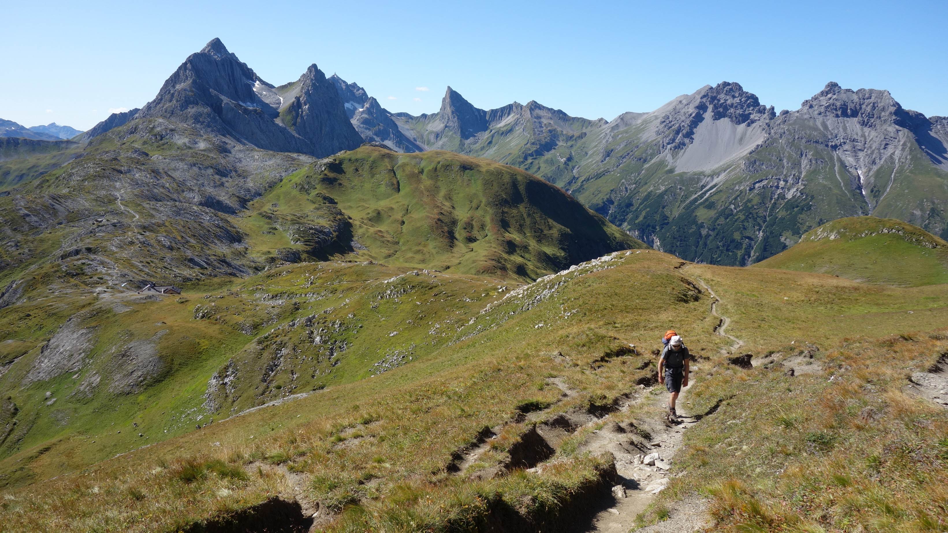 Terwijl we richting de Leutkircher Hütte klimmen, wordt de bergwereld alsmaar weidser en komt mijn wandelhart terug tot leven. Het is Kaiserwetter, geen wolkje aan de lucht. Mijn benen zijn goed…te goed volgens Ivo.
