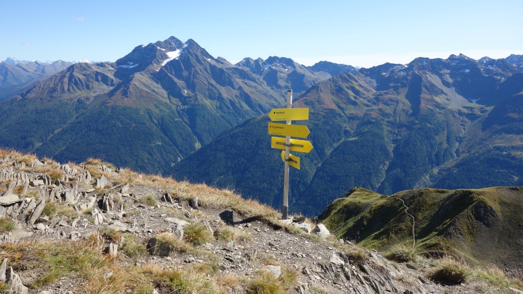 De Hanauer Hütte laten we links liggen, en we steken rechtstreeks naar de Galtseitenjoch. Een poging om de Reichspitz te beklimmen, moeten we staken. Het wordt toch iets te steil. Omhoog klauteren is één ding, afdalen een ander.