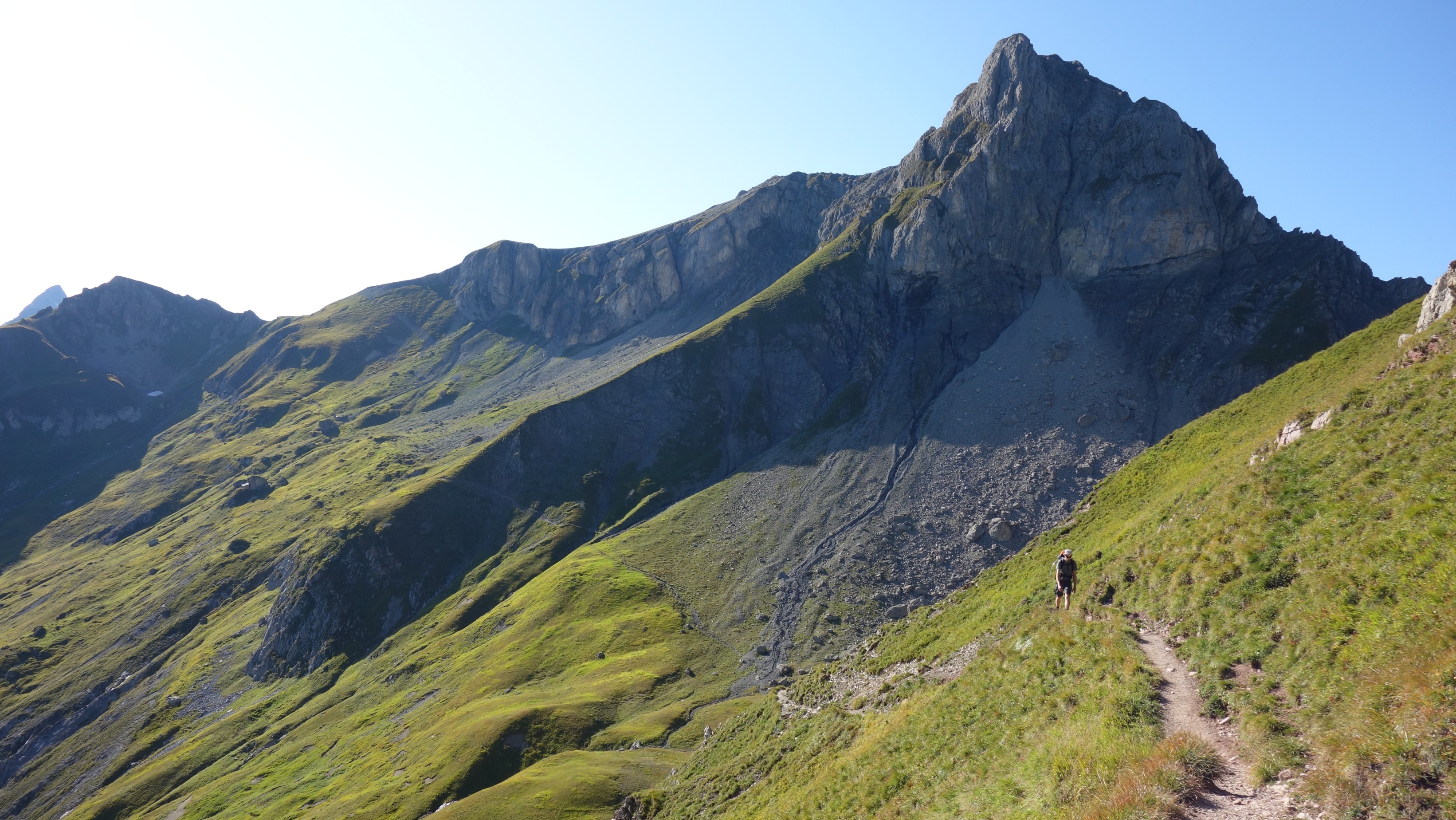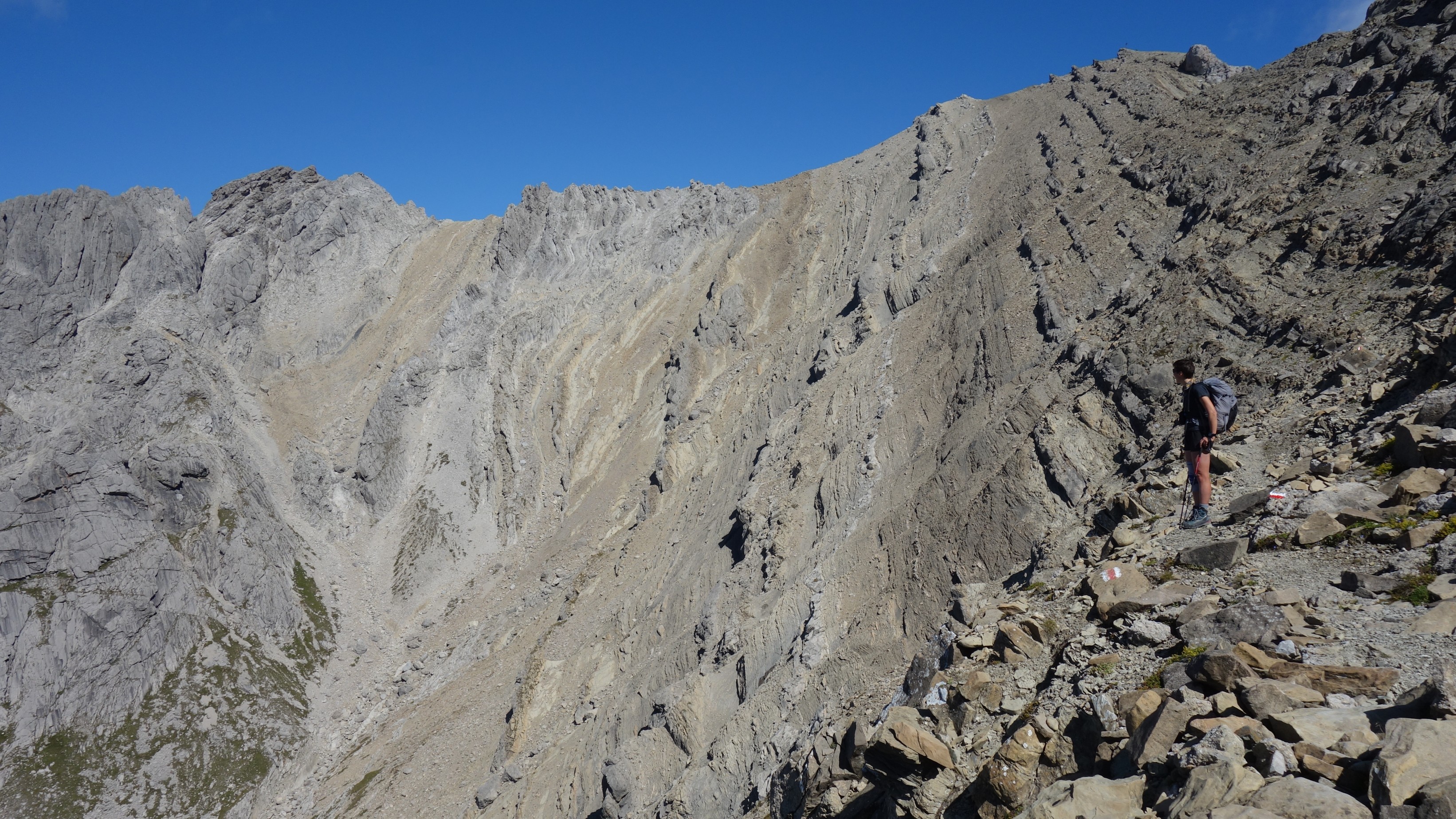 De Kübelwänd is een steile rotsflank waar een wandelroute via breuklijnen omhoog loopt. Impressionant!