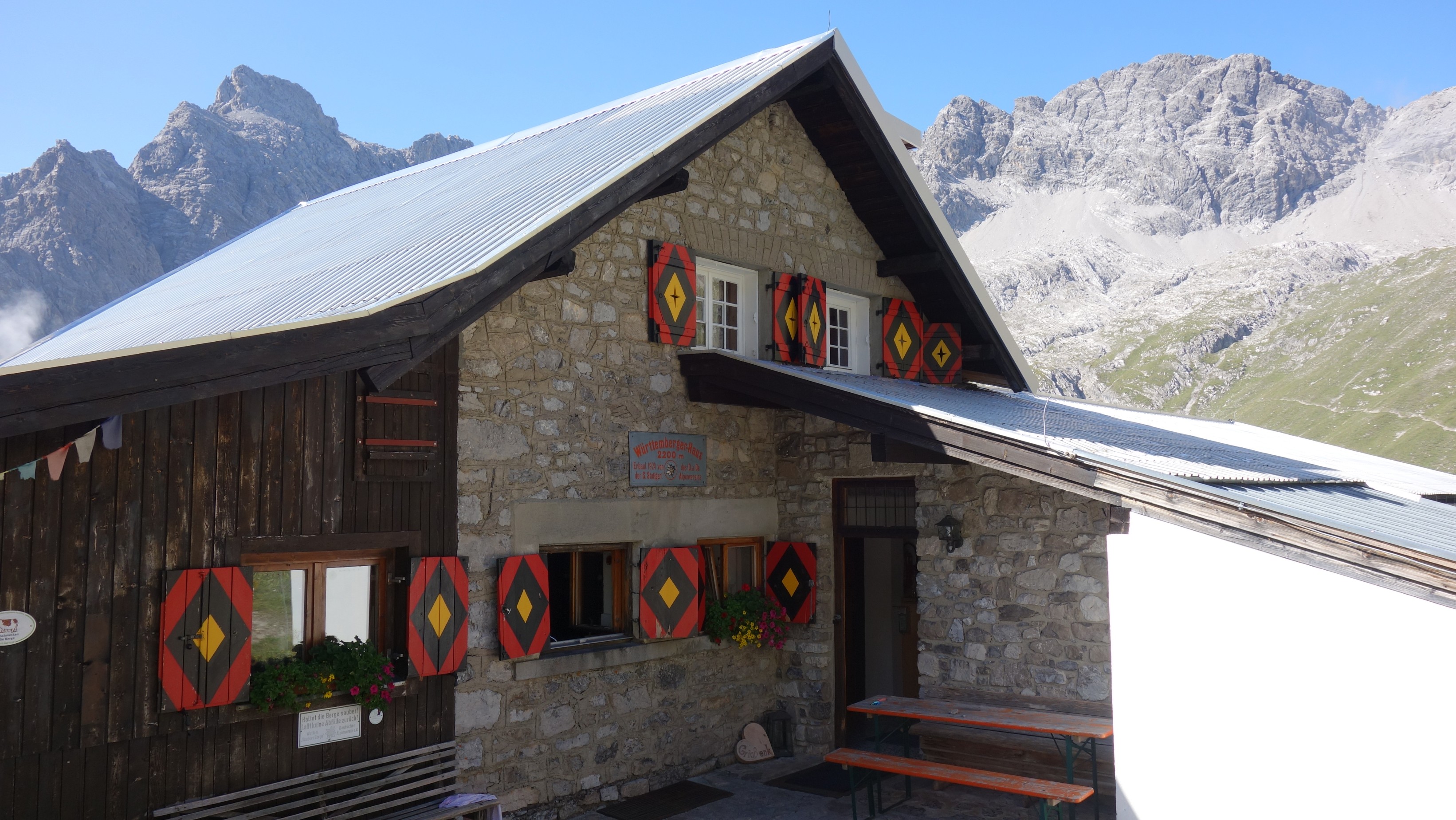 In de Muttekopfhütte is het terug wat drukker, hier komen ook rotsklimmers die in de buurt heel wat routes vinden.
