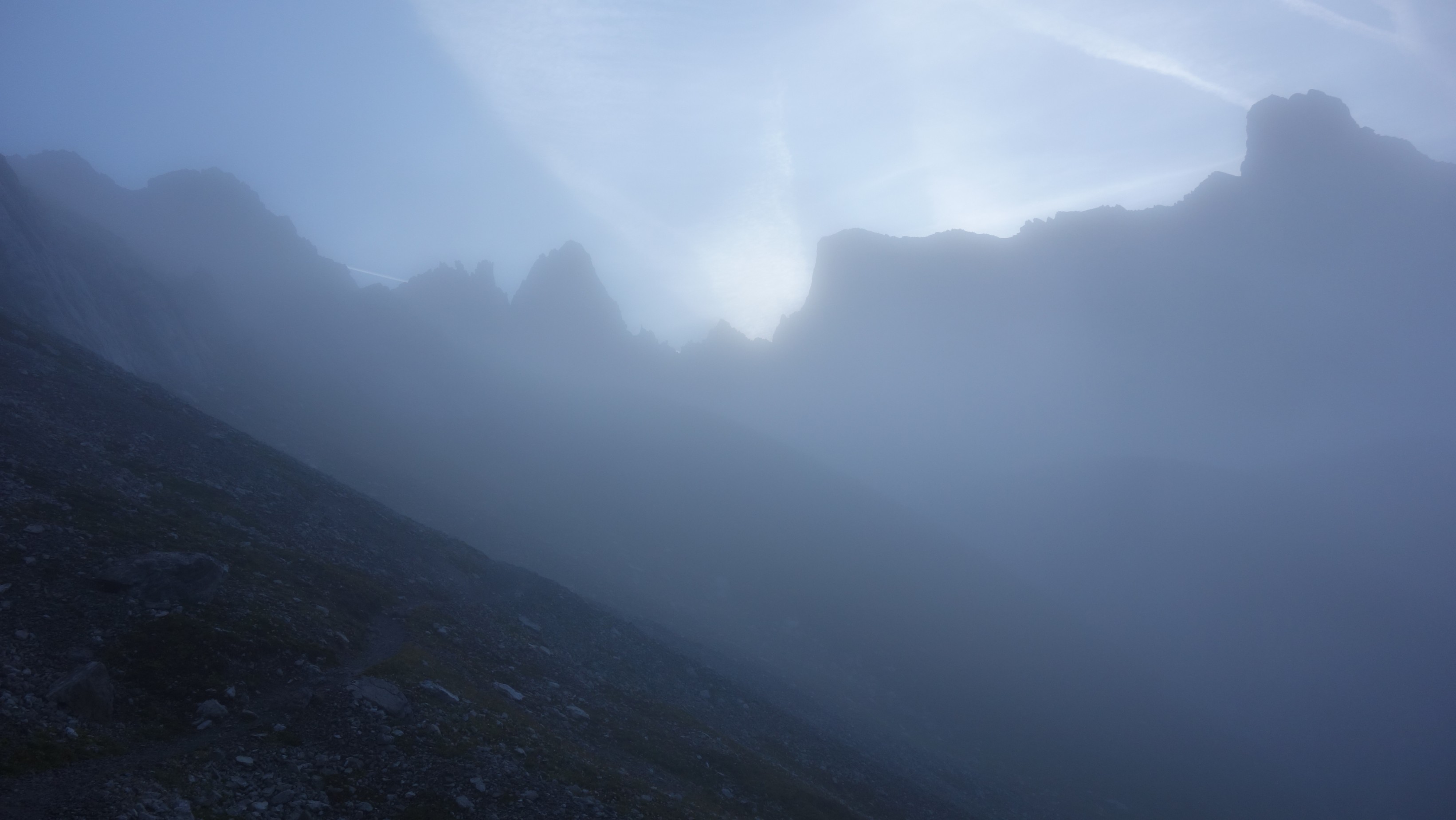 De dag start in een dichte mist. Onze wereld wordt een pak kleiner. Het voelt zelfs een beetje beklemmend aan.