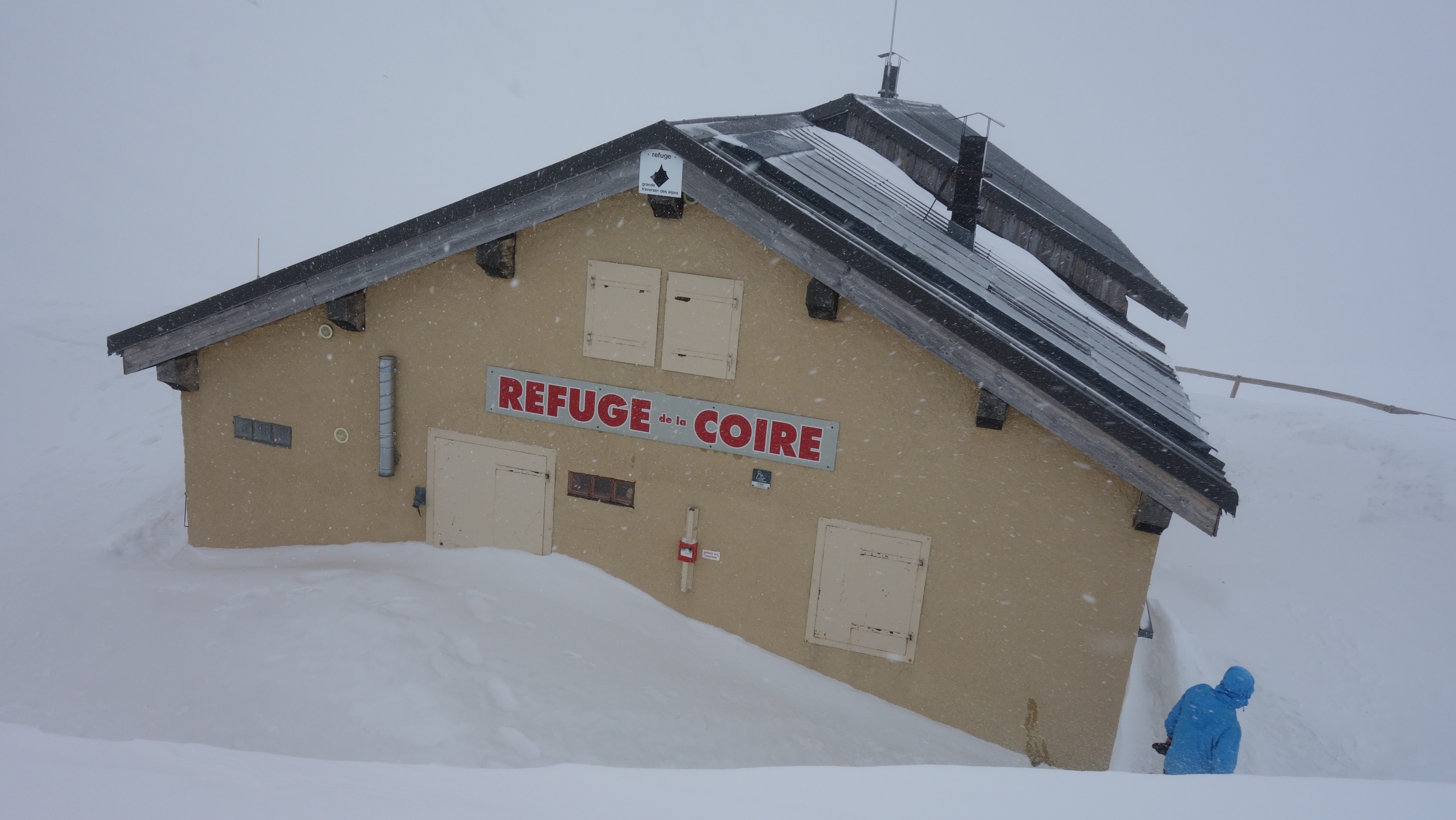 De laatste kilometer naar Refuge de la Coire gebeurt in een quasi white-out. Een GPS is geen luxe maar noodzaak in zo’n condities. In de winterruimte hebben 5 toerskiërs de kachel al opgestookt. We maken er dankbaar gebruik van om lijf en leden terug op te warmen.