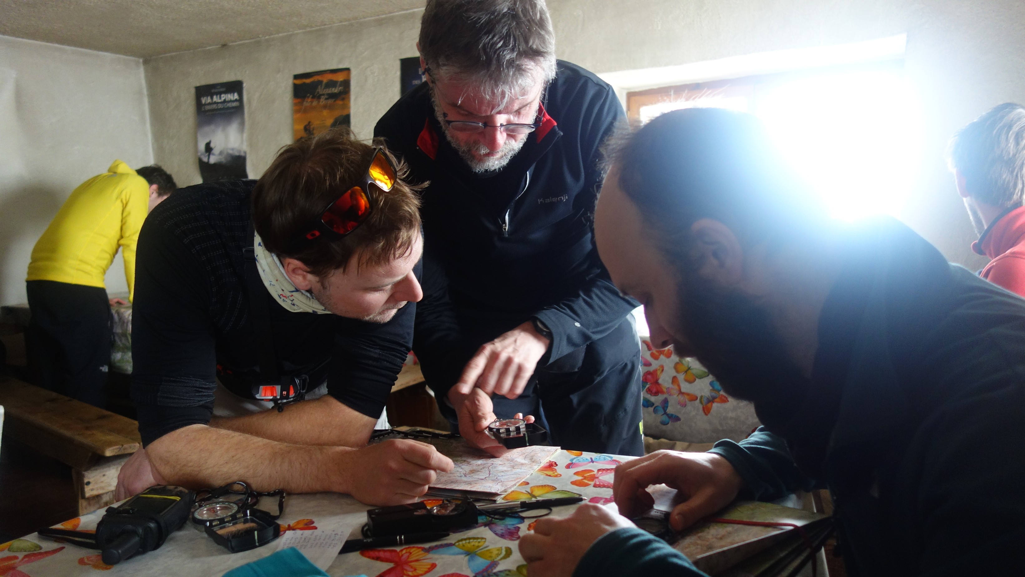 Na een late lunch en een blik door het raam, is het duidelijk dat we niet ver meer gaan lopen vandaag. Dus maken we gebruik van de tijd en de ruimte om nog wat bij te leren. Hoe lees je UTM-coördinaten af op een kaart en gebruik je die om een GPS-route te maken? Ideaal als je de hulpdiensten moet contacteren of ‘on the field’ een alternatieve route moet uitwerken.