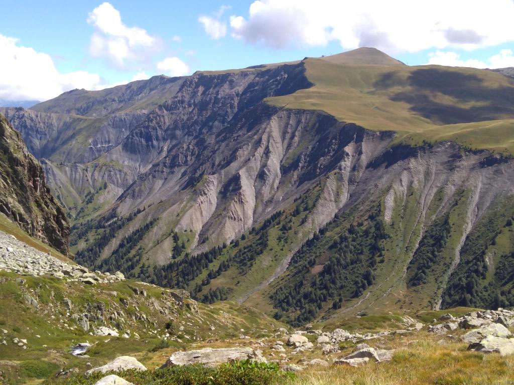 Het eerste deel van de klim loopt door de vallei naar Plan Lachat. Het lijkt vals plat maar is in wezen 6-7% steil. Mijn maag begint wat ambetant te doen van al die zoete snacks en mijn energieniveau zakt. Niet meteen het goede moment voor een dipje. Ik heb het gevoel tergend traag vooruit te gaan, maar dat lijkt nu bij iedereen zo. Niemand die nog een woord zegt. Samen afzien. Hoe mooi kan het leven zijn.