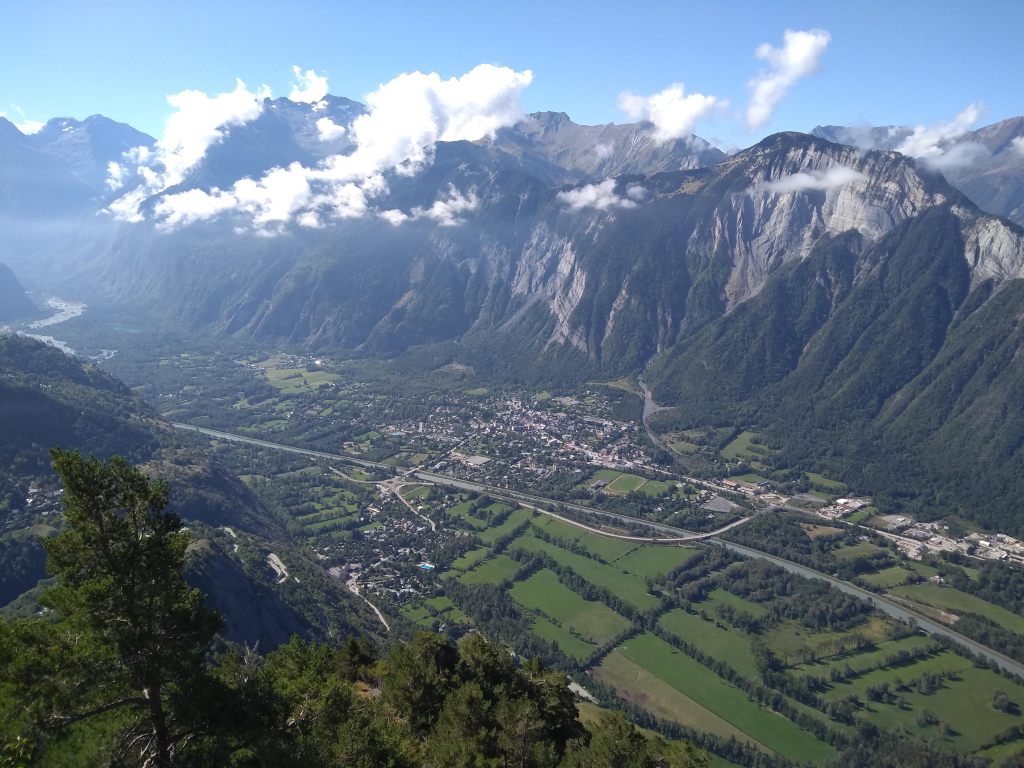 De afdaling naar Col de Lautaret is een pareltje, net als op de Glandon verkeersvrij gehouden. Schitterend parcours met zicht op hoge bergen en gletsjers. Veel tijd om rond te kijken is er helaas niet, maar het is heerlijk om door de bochten te zoeven. De beklimmingen in de Alpen zijn dan wel lang, de afdalingen gelukkig ook. Af en toe zit er wel nog een knikje bergop tussen, en dan schakel ik terug om mijn benen niet te veel te pijnigen. Een behoorlijke tegenwind zorgt er ook voor dat er bergaf bijgetrapt moet worden. Samen met twee oudere wielertoeristen lossen we elkaar af tot in Bourg d’Oisans, terwijl jonge mannen in ons wiel zitten. Pussies!