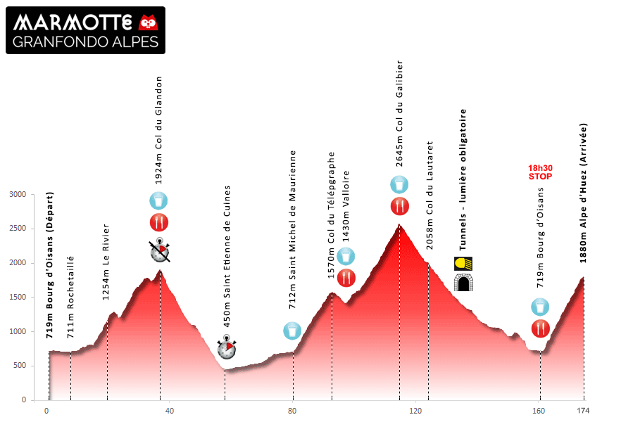 De bergwandelaars zullen vooral denken aan het wollige diertje dat je op menig alpenweide ziet rondlopen in de zomer. Bij wielertoeristen staat de Marmotte gekend als gran fondo, een ‘stevig’ fietsritje van 175km en 5000 hoogtemeters met 4 spraakmakende beklimmingen: Glandon, Télégraphe, Galibier & Alpe d’Huez.