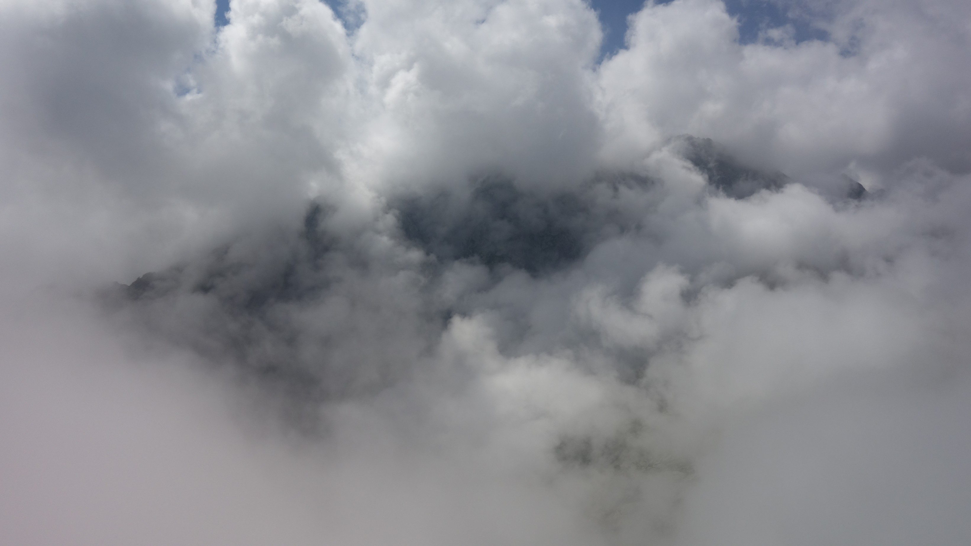 Daar zijn de wolken weer die na de middag altijd komen aandrijven, vanuit de Povlakte. Gelukkig is er net genoeg zicht om het terrein nog te kunnen lezen. Een laatste stevige afdaling en we staan terug op een pad. Mission accomplished!