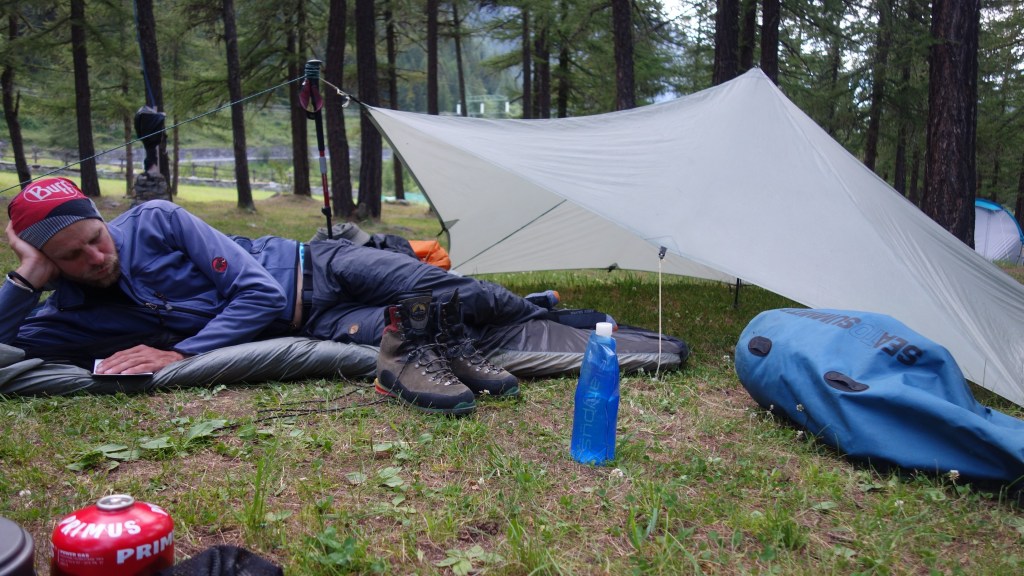 In het noordelijke gedeelte zijn er wel meer berghutten (en kan je dus een huttentocht maken) en ook enkele campings vb. Camping Grivola in Valsaravenche waar we hebben overnacht. In Rhêmes-Notre-Dame (waar er geen camping is) hebben we getracht toestemming te vragen om ergens onze tarp neer te poten maar zonder resultaat. We hebben dan zelf een discrete plaats in het bos gezocht.