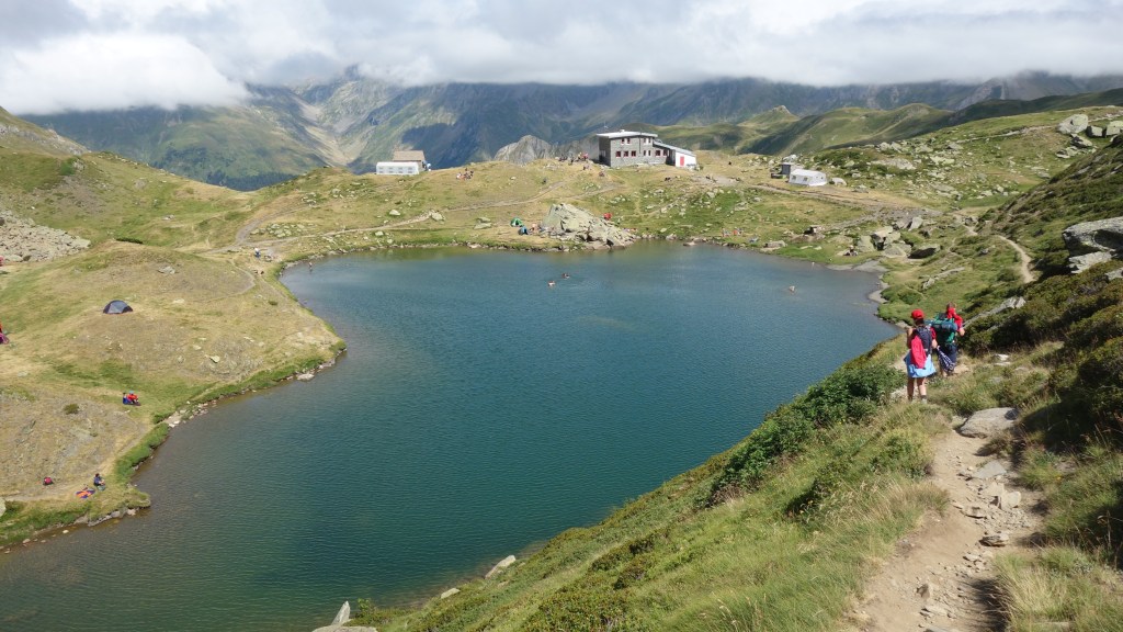 Het is duidelijk dat in dit coronajaar de Fransen massaal voor vakantie in eigen land hebben gekozen, en het voelt ongemakkelijk druk aan bij de Refuge d’Ayous. Gelukkig hebben we een bivak voorzien en is de bergweide bij Lac Gentau meer dan ruim genoeg voor de vele tentjes en nog een beetje ‘personal space’.