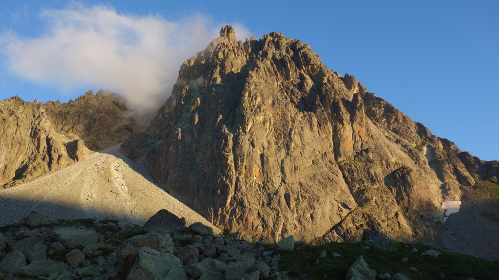 Na het lieflijke groen van de voorbije dagen, komen we nu in de woeste granietwereld van de Balaïtous. Gezien de bivakmogelijkheden erg beperkt zijn, heb ik voorzien dat we slapen en eten in de kleine en erg authentieke berghut Refuge d’Arrémoulit.