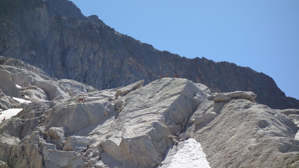 De Col du Pabat ligt niet langs het HRP-parcours en wordt bijzonder weinig belopen. De groep ontdekt al snel waarom. In eerste instantie is er nog ietwat sprake van een pad, maar hogerop is het zoeken naar een traject over grote massieve en gladgepolijste rotsen waar ooit een gletsjer lag. De Glacier du Pabat heeft zich nu heel hoog op de bergflank teruggetrokken en is bijna verdwenen. We komen enkel schapen en gemzen tegen in deze woeste wereld. De isard (Pyreneeën) is familie van de chamois (Alpen) maar iets kleiner en lichter gebouwd, en ook wat rossiger van kleur.