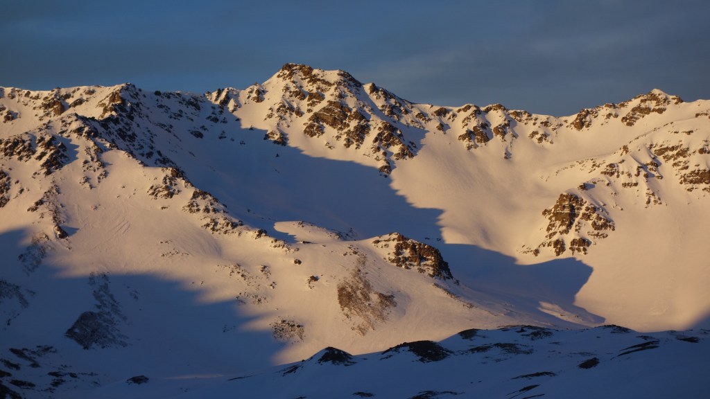 Het lawinegevaar is gestegen van 2 naar 3 door de verse sneeuwval met veel wind en er komt alweer een nieuw sneeuwfront aan vandaag. We plannen dus geen ambitieuze route.