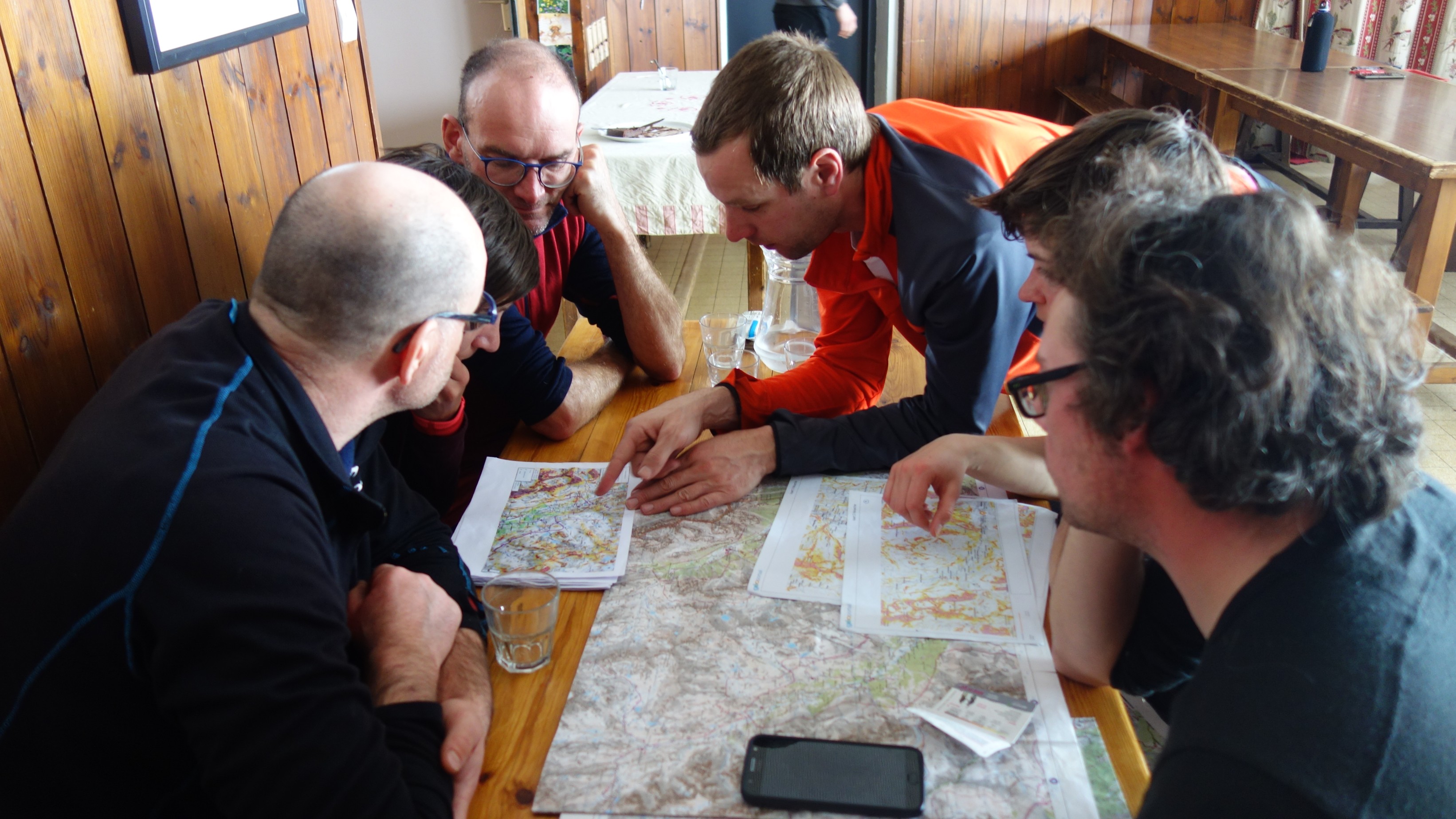De kleine gezellige berghut is ideaal voor een warme lunchpauze en intussen ook nog wat les te geven over hoe je UTM-coördinatoren op de kaart afleest, als waypoints in je GPS ingeeft en daar een route van maakt.