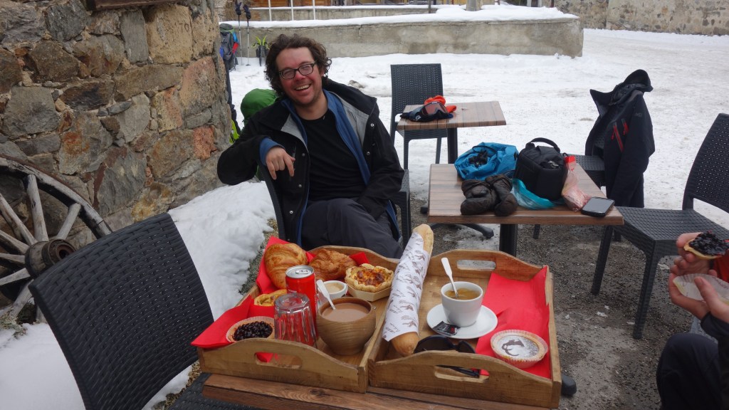 Moe én voldaan vlijen we ons neer op het terras van een bakkerij. Met ogen die tien keer groter zijn dan onze maag, kopen we het halve assortiment van taartjes en koffiekoeken op. Het zou de laatste keer zijn dat ik dit fantastische moment om een tocht succesvol af te sluiten zou delen met Wouter Proost. De goedlachse avonturier vergezelde me al bij een trip naar Bosnië-Herzegovina en de winterse Pyreneeën, en ging meermaals mee op bivaktocht in de Ardennen. In augustus 2021 verdween hij spoorloos in de Mercantour tijdens een solo-tocht. We vergeten je nooit!