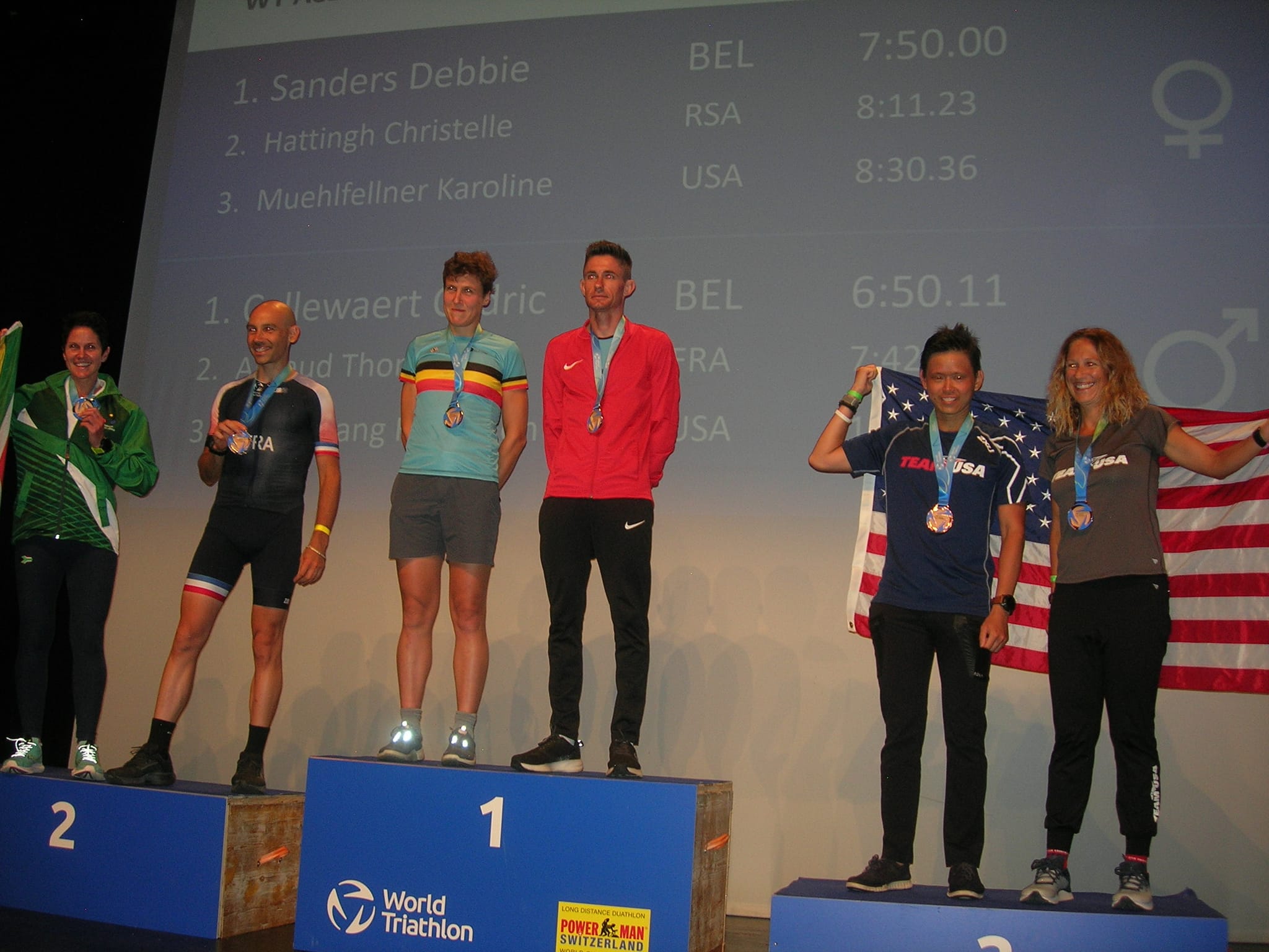 De wissel verloopt wat moeizaam. Intussen moet ik dringend naar toilet maar een tri-suit uitdoen in een krappe hudo met een bezweet lijf is duidelijk niet evident. Van bij de eerste loopkilometer voel ik de buikkrampen opkomen. Ik probeer toch nog altijd enkele gelletjes in te nemen om de motor op gang te houden, maar ’t is continu de pijn verbijten. Doorlopen lukt daardoor niet, en ik zie een Duitse me terug inhalen. Uiteindelijk eindig ik 5de overall, en als eerste van alle agegroupers.