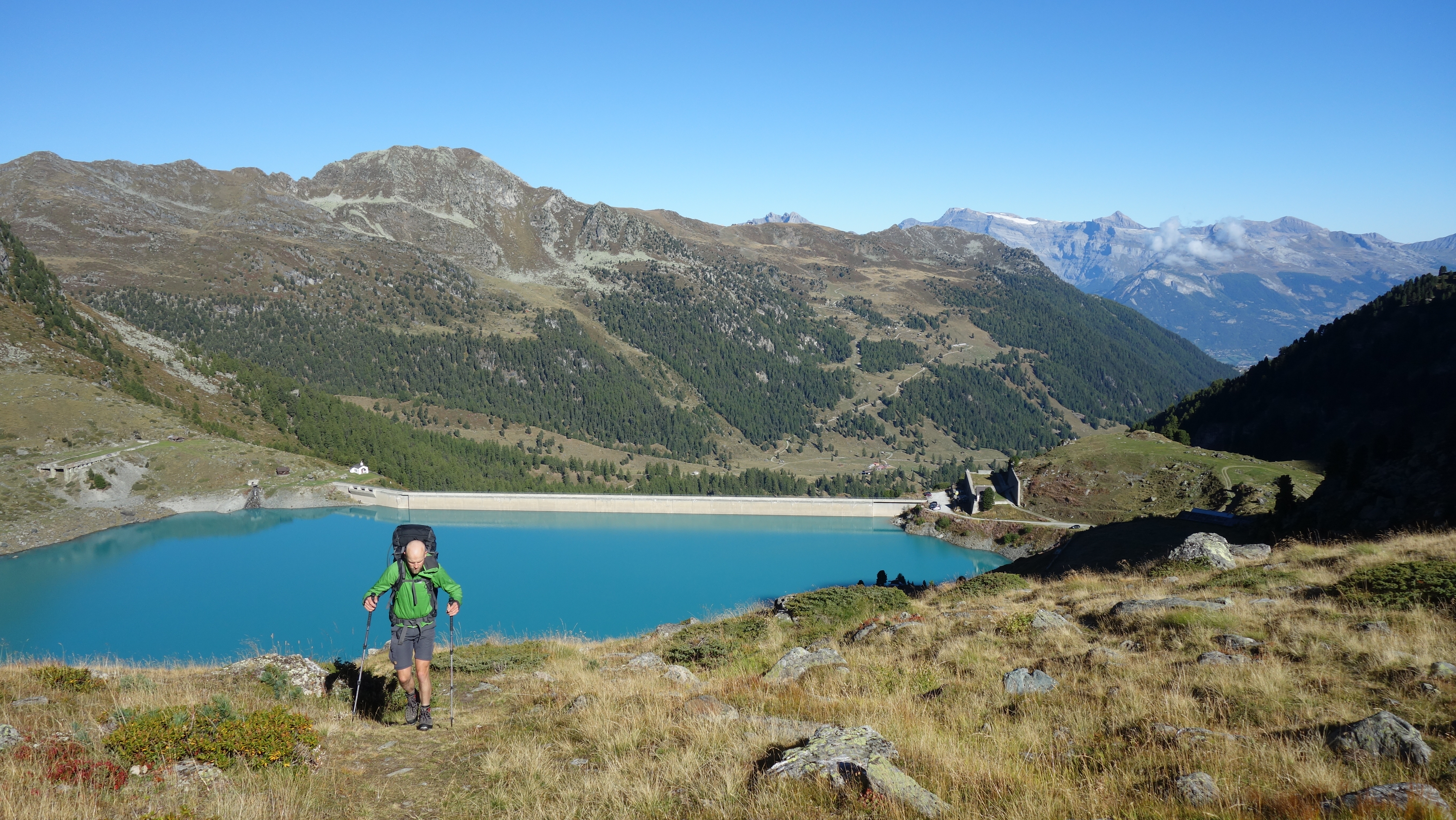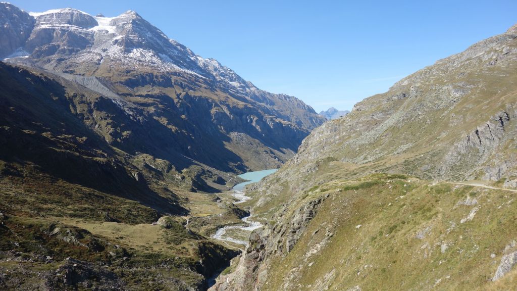 Eenmaal op de col zien we het meanderende smeltwater dat het Lac des Dix voedt, het grootste stuwmeer van Europa. Met een volume van 400 miljoen kubieke meter zorgt het voor 20% van de energievoorziening van Zwitserland.