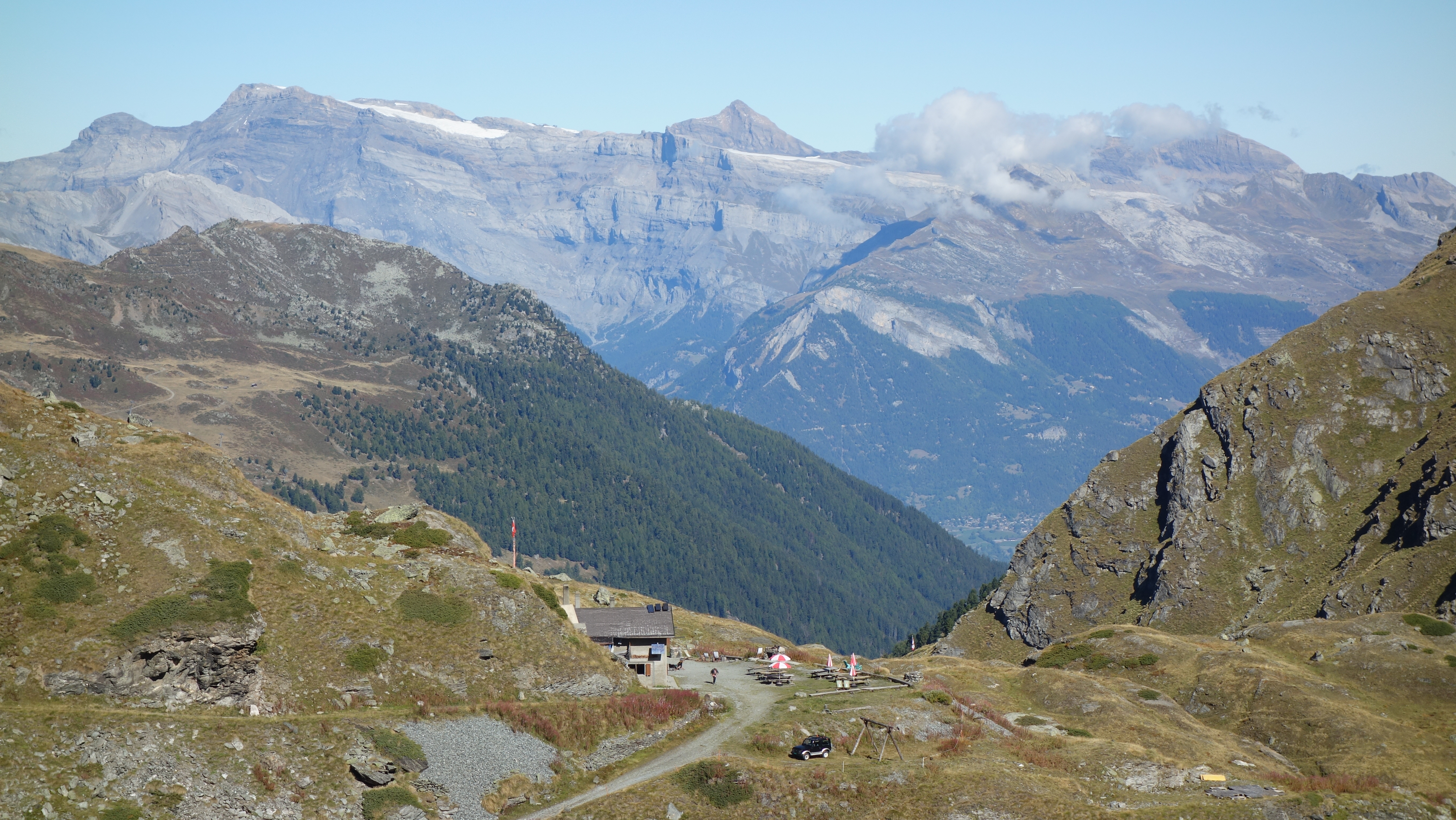 We lunchen nog in Hotel Mauvoisin om daarna verder af te dalen naar Bonatchiesse. Voor mij wordt dit het eindpunt van de tocht. Vanaf hier gaan onze wegen even splitsen. Ivo krijgt een spoedcursus kaartlezen om via de Tête du Sarshlau, Col du Bec d’Aigle en Col de Louvie in een lange en stevige etappe terug te wandelen naar Lac de Cleuson. Ik reis met het openbaar vervoer rond en hoop hem daar terug te zien.