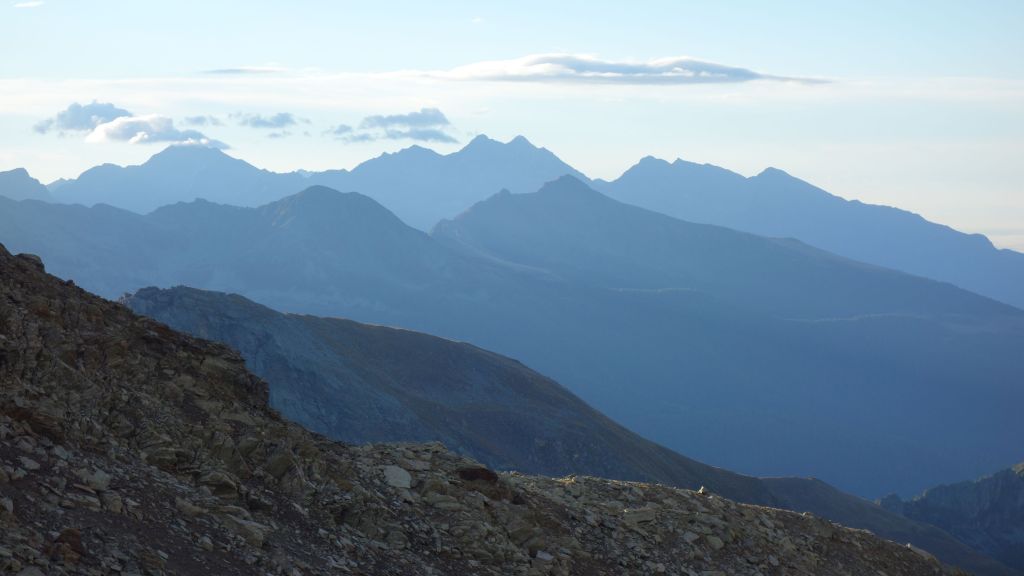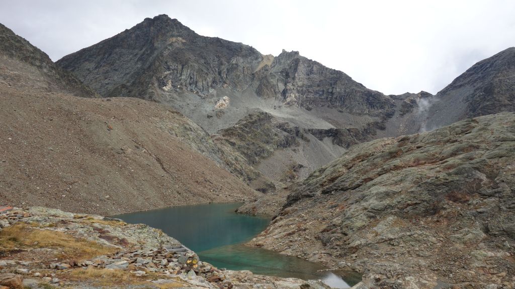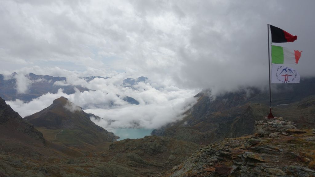 Het wolkendek breekt open dus besluiten we de hoge route naar Bivacco Rivolta te nemen, die met steenmannetjes is aangeduid. Maar nog geen uur later gaan we letterlijk en figuurlijk de mist in. Na een eindje ronddwalen, onnodige hoogtemeters en een discussie tussen twee gefrustreerde trekkers zitten we terug op het goede spoor. Vanaf Lac de la Roisetta krijgen we opnieuw zicht en geraken de plooien weer gladgestreken.