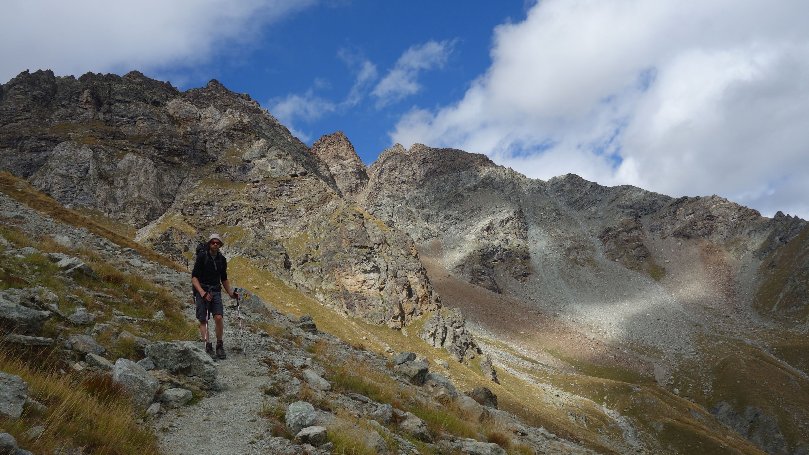 Deze tocht is enkel geschikt voor ervaren bergwandelaars met een goede fysieke conditie en voldoende tredzekerheid. Dit is een tocht van niveau 4, vooral door etappe 3 (overschrijding Arolla-gletsjer) en sommige moeilijkere trajecten (etappe 2, etappe 4). Je kan die laatste keuzes vermijden en de tocht iets eenvoudiger maken maar er is geen alternatief voor etappe 3. Door de klimaatopwarming is die moeilijker geworden want je moet nu veel meer dan vroeger een weg vinden door de morenen. Ik raad hoe dan ook aan te wachten tot augustus/september zodat de gletsjer zeker aper ligt en ook de steile passages en cols op deze uitdagende tocht sneeuwvrij zijn. Meer info over de moeilijkheidsgraad van mijn tochten kan je lezen in dit bericht.