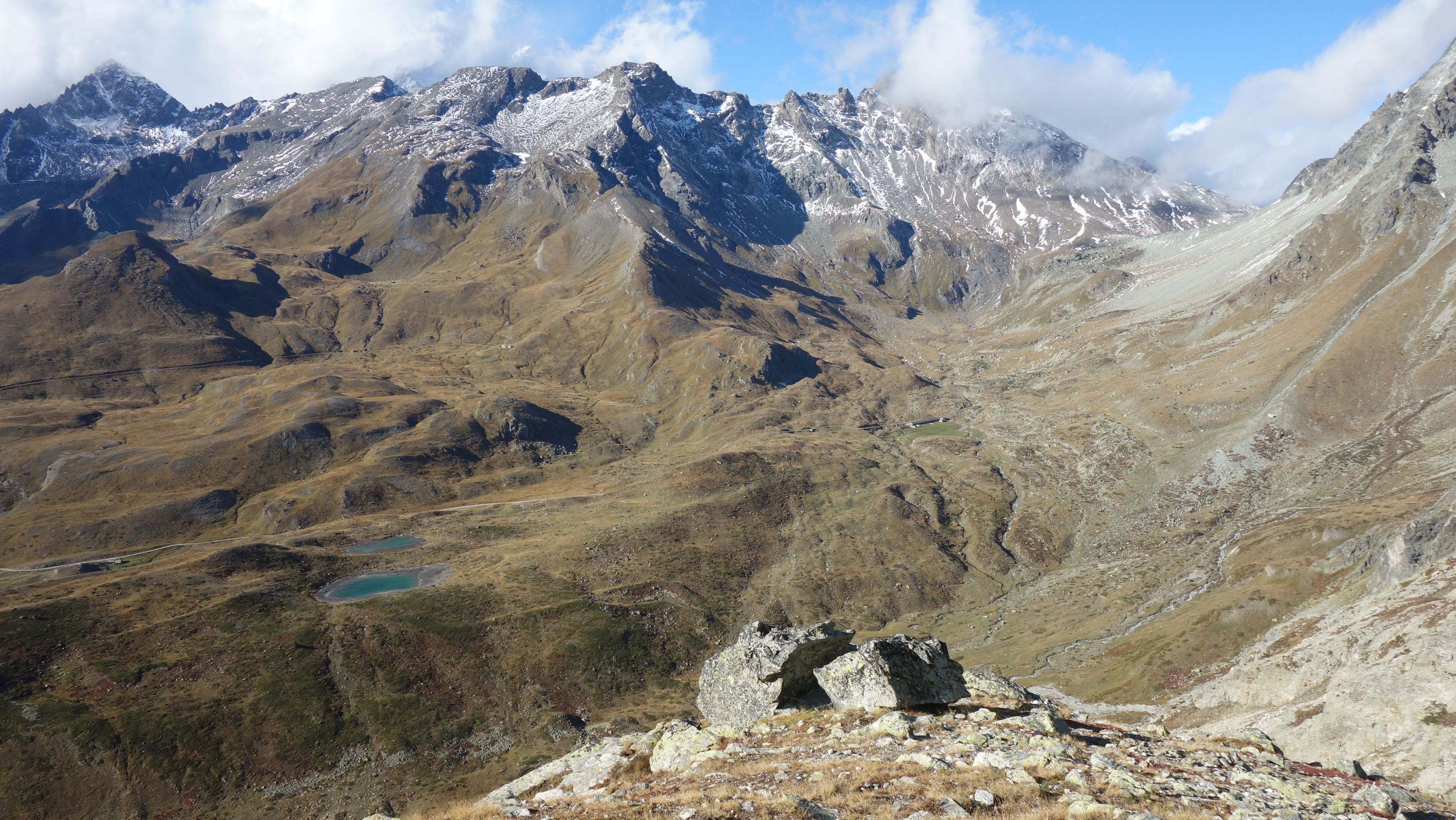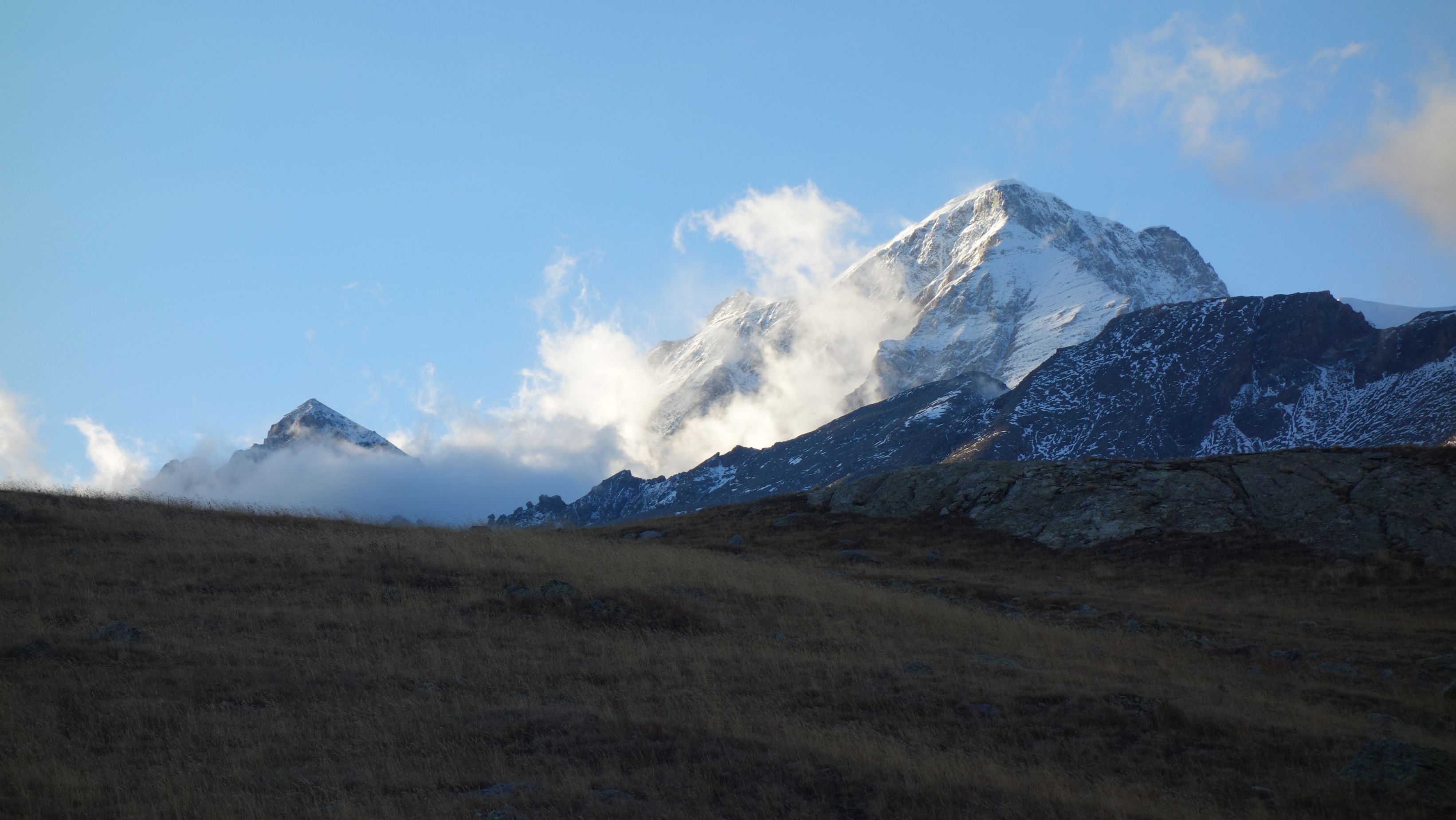 Via de Col de Brison en Col Cormet komen we op een uitgestrekt bergplateau terecht. Het is herfst op de Plan du Breuil met roodkleurende bosbessenstruikjes en verse sneeuwval op de toppen rondom.