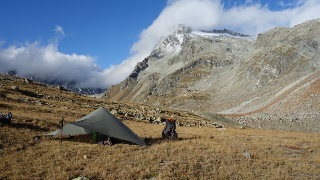 Wildbivakkeren is toegelaten in Zwitserland als je de beschermde zones vermijdt, die kan je hier bekijken (check de gekleurde zones op het kaartje). Bij Lac de Dix (einde etappe 1) is er een onbemande hut waarnaast je je tentje kan zetten, en in de vallei van Bonatchiesse (einde etappe 9) kan je terecht op de heel rustieke camping. We hadden de tocht lastminute voorbereid en hebben de regelgeving en alternatieven ter plekke ontdekt. Ook in Italië kan je vrij voor 1 nacht je tentje opslaan, daar zijn bij mijn weten geen beperkingen in dit gebied gezien deze route buiten het Nationaal Park van Gran Paradiso valt (waar het wel verboden is).