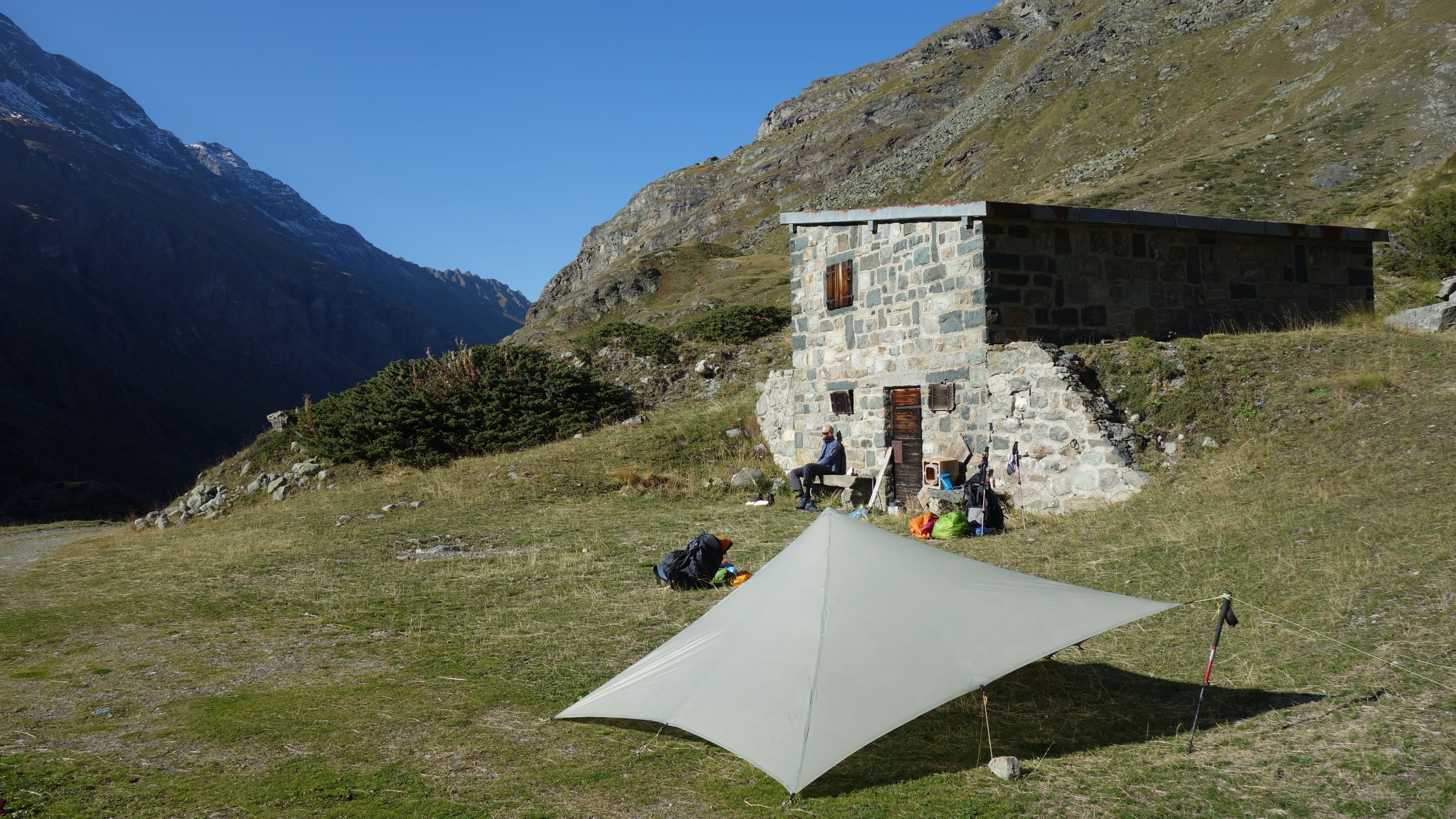Terwijl we koers zetten naar Bivacco Regondi-Gavazzi kijken we even achterom en zien dat we daar niet alleen gaan zijn. ’t Is weekend en dan trekken er natuurlijk veel mensen de bergen in. Daarom besluiten we alsnog te bivakkeren en onze tarp bij Lac de la Besèya op te slaan. Een fantastische plek, alleen is het een diepvries. Mijn energiepeil is aan het zakken, de keelpijn wordt erger en ook ademhalen begint moeilijker te worden. Dat voelt allesbehalve goed aan.