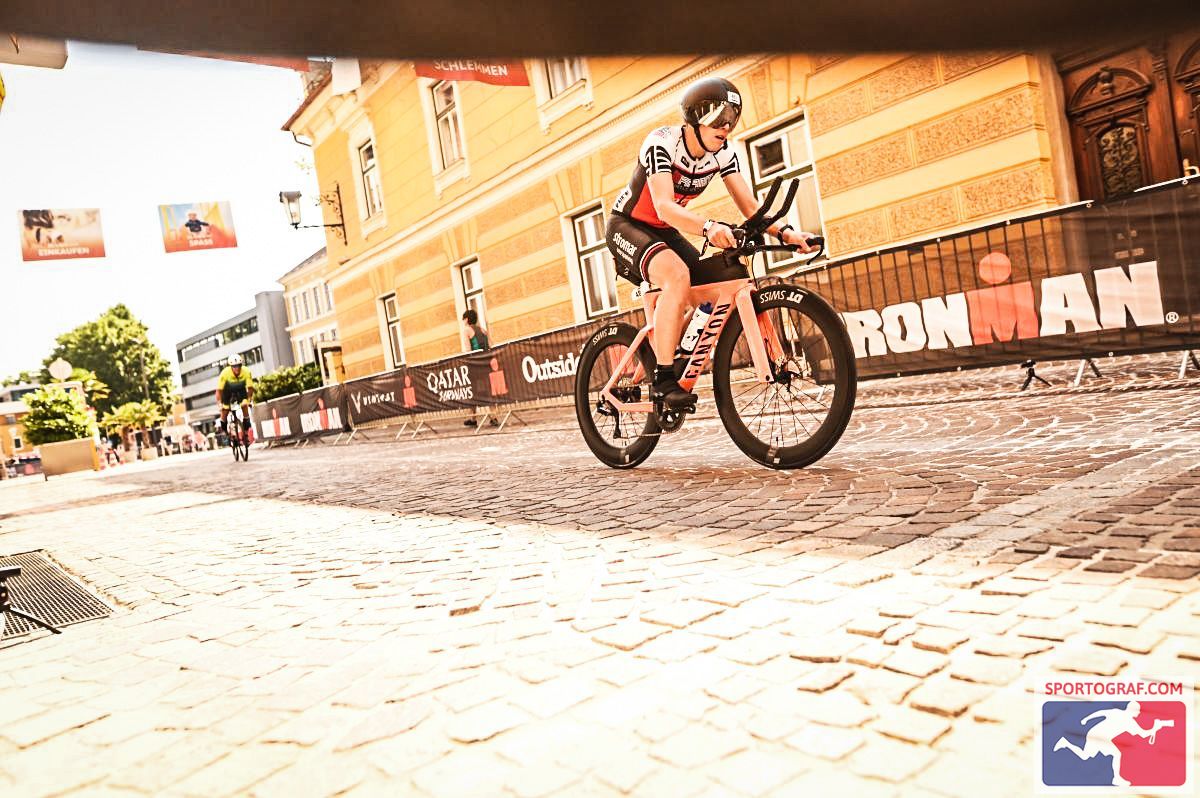 Ik steek voortdurend atleten voorbij, die opvallend grote versnellingen duwen terwijl ik mijn cadans hoog houd. Mijn darmen pruttelen af en toe wat, en mijn energieniveau gaat op en neer, maar de soms steilere bergjes worden vlot verteert. Voor de één of andere reden is het gevoel op wedstrijd altijd beter dan op training. Op de laatste helling ga ik voorbij de intussen wereldbefaamde #AverageRob die helemaal niet zo ‘average’ meer is. Na 5:21:07 fietstijd zet ik mijn TT terug op stal.