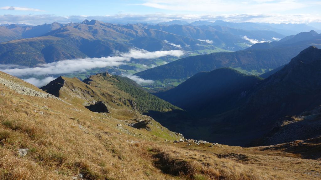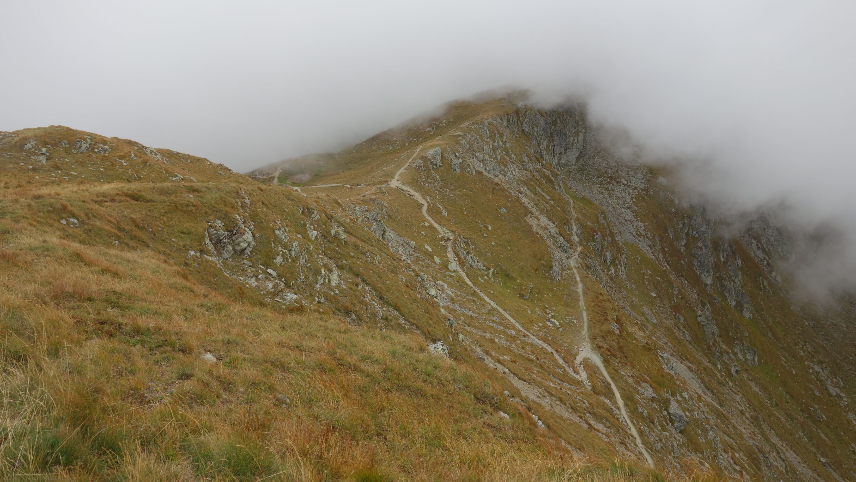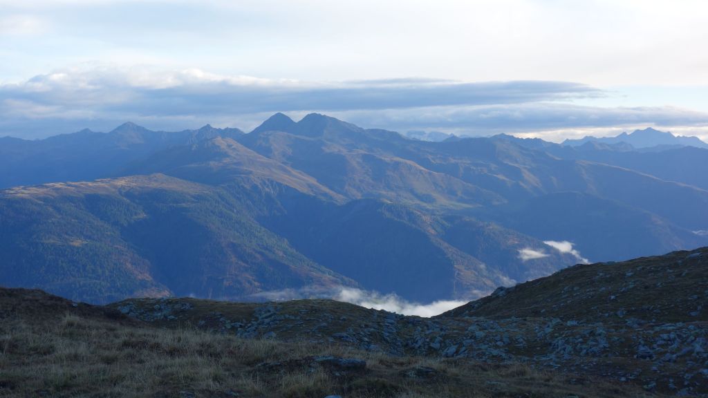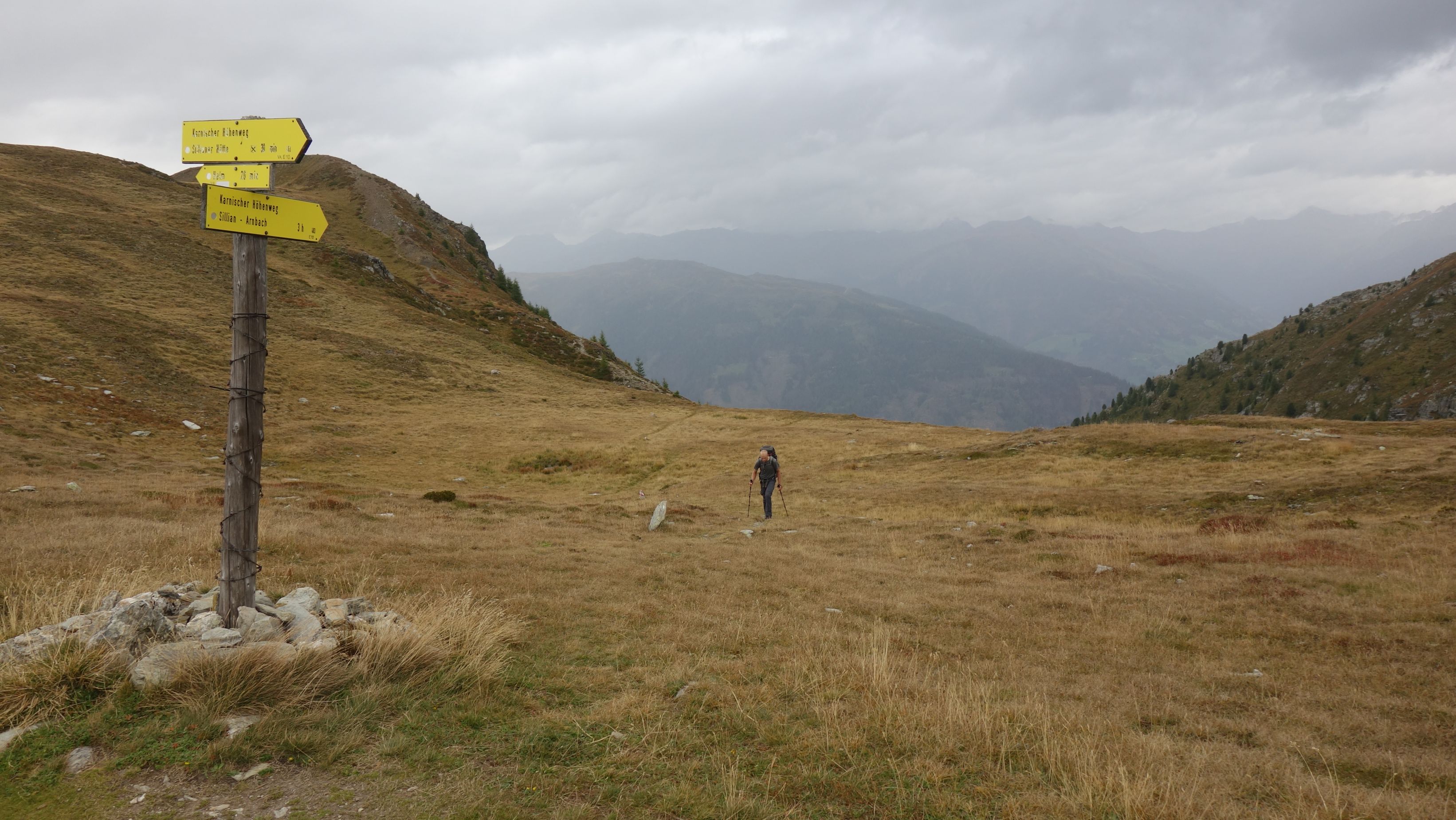 Vanuit Sillian leiden diverse wandelroutes naar de kam ten zuiden van het stadje. Wij kiezen voor route 473 naar de col ten noordwesten van de Füllhorn. Een grijze waas hangt over het landschap. Niet echt de gedroomde start, maar het doet toch deugd om de natuur in te trekken.