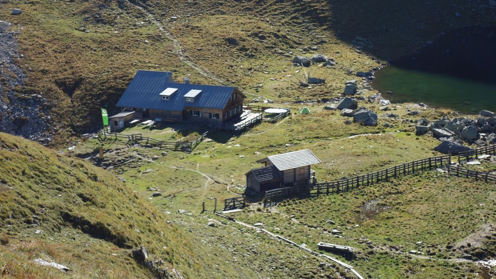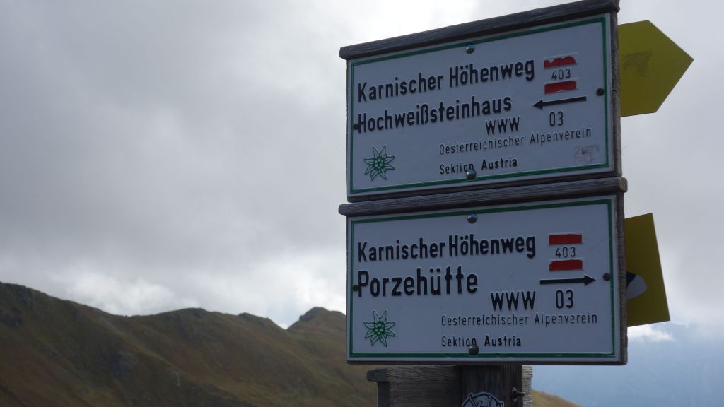 Terug onvoorspelbaar weer vandaag, maar de zon lijkt er toch nog door te komen. Via de Porzescharte duiken we alweer Oostenrijk in, naar de gelijknamige berghut.