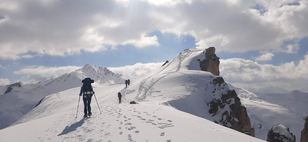 De Beaufortain is een uniek gebied in de Franse Alpen, grotendeels gespaard van het skitoerisme en een paradijs voor toerskiërs en sneeuwschoenwandelaars. Er zijn tal van routes mogelijk, zowel voor beginners als gevorderden. Tijdens de krokusvakantie van 2022 nam ik 6 enthousiaste bivakkers op sleeptouw om ervaring op te doen om daarna zelfstandig op weg te kunnen gaan.