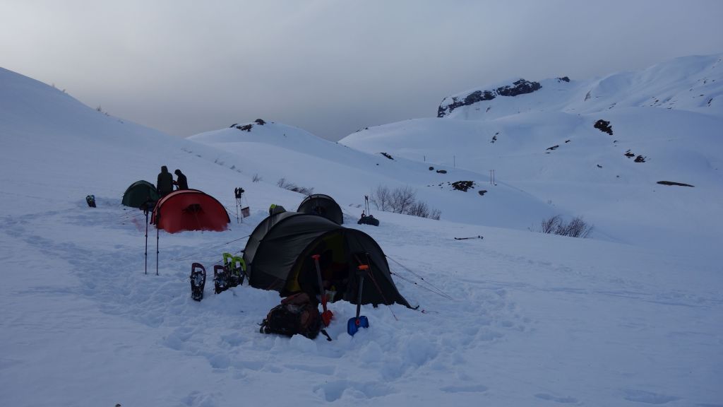 De eerste dag begint met een grote materiaalshow. De ganse parking ligt vol met tenten, vuurtjes, slaapzakken en eten, heel veel eten. Alles wordt gecheckt en gekeurd. Tijdens een winterbivaktocht mag je niets aan het toeval overlaten. Je veiligheid én comfort hangen af van wat je meeneemt in je rugzak. Maar als je overdrijft, dan wordt de rugzak niet meer draagbaar. Voor wie interesse heeft, vindt hier onze paklijst.