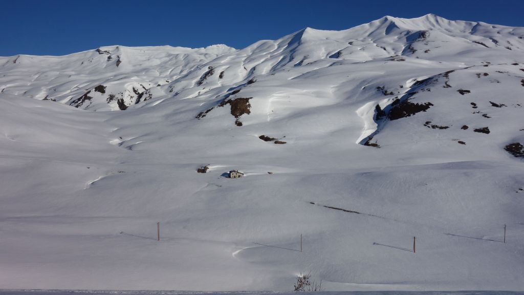 De Cormet de Roselend is bij wielertoeristen een bekende col, nu is het winters niemandsland. Ook aan de Refuge du Plan de Lai is het heel stilletjes. De berghut is wel open maar niet bemand. Je kan er overnachten en gebruik maken van enkele basics zoals een kookvuur tegen een kleine vergoeding.