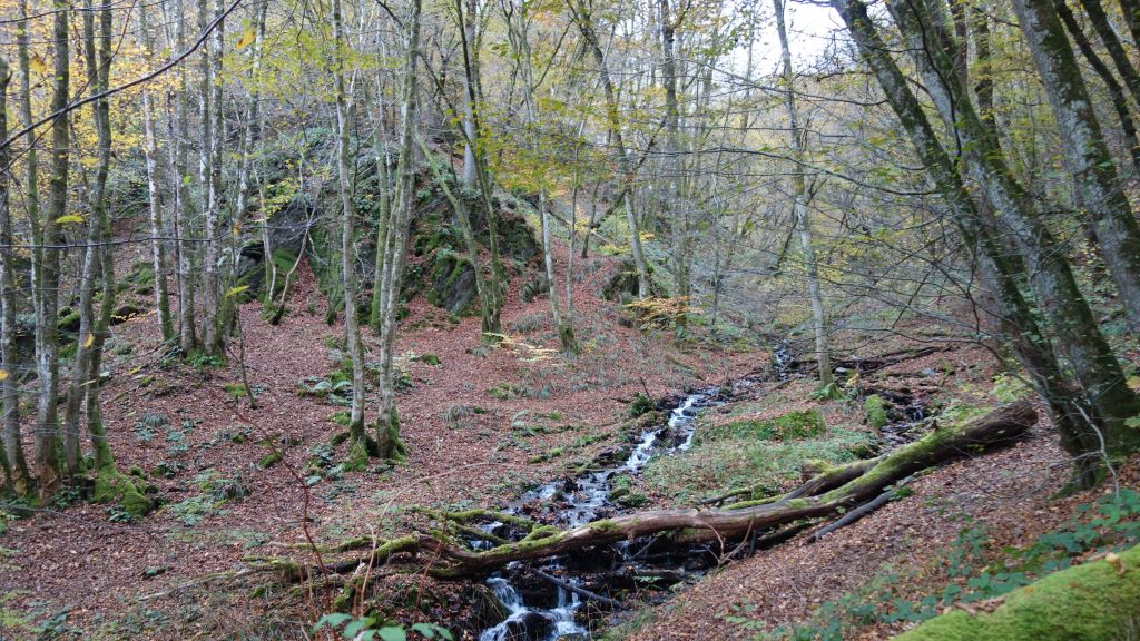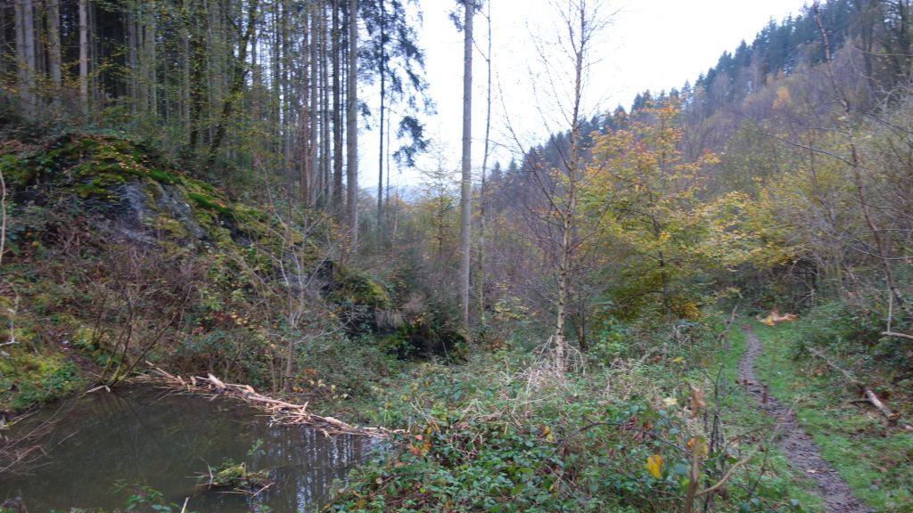 Via een beekvalleitje duiken we terug de Ourthevallei in. De bevers zijn hier erg bedrijvig geweest. Met hun scherpe voortanden hebben ze tal van boomstammen doorgeknaagd. Beverdammen blokkeren het water zodat de toegang tot hun burchten onder water staan en vijanden op afstand houdt. Eind de 19de eeuw waren de ‘castors’ uitgeroeid omdat ze geliefd waren voor hun bont, vlees en bevergeil (die vroeger medicinaal vb. in aspirine gebruikt werd). Maar eind jaren ’90 werden ze illegaal uitgezet door enkele ‘fans’ en de populatie groeit nog steeds.