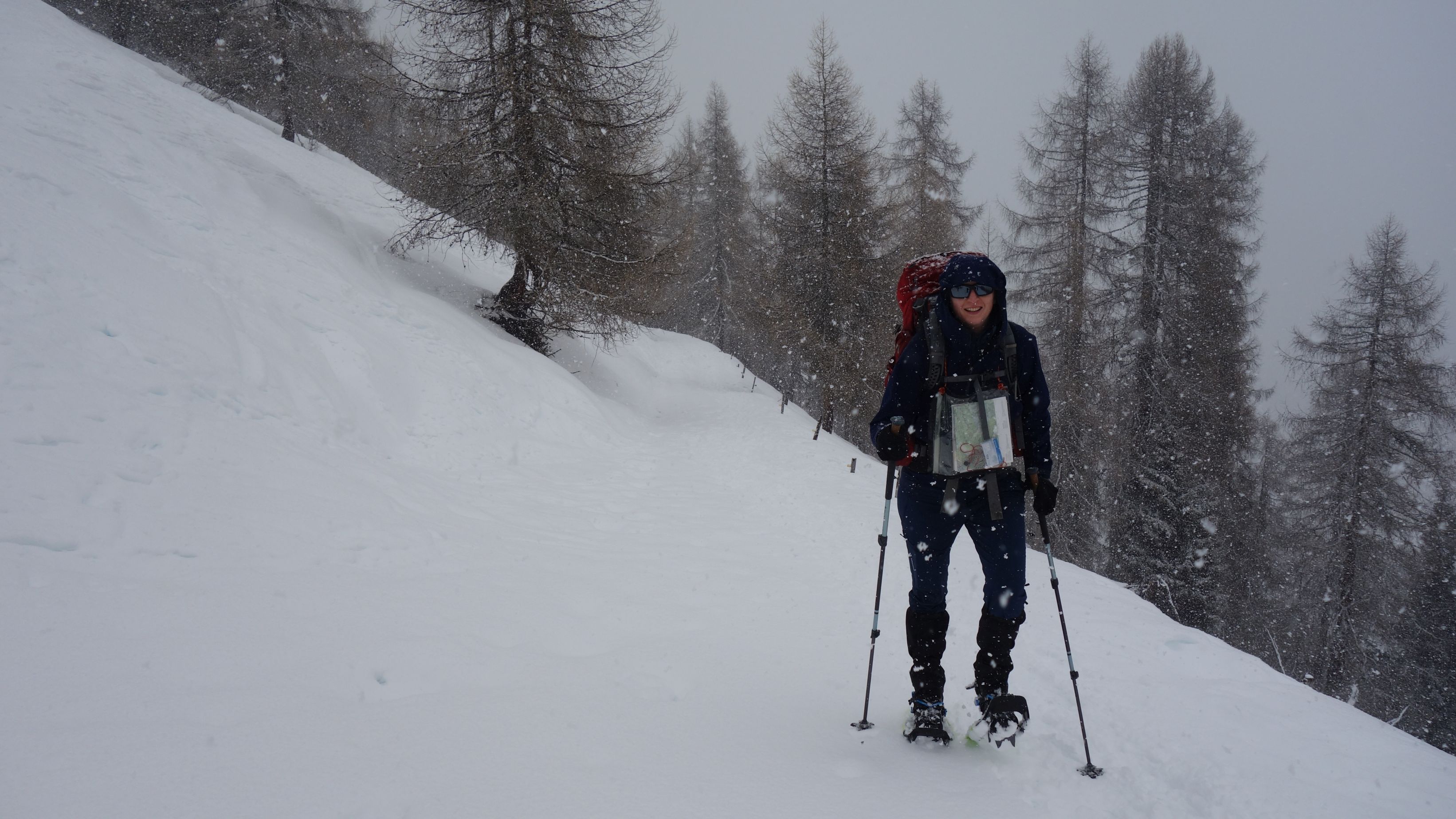 Na een bijzonder zonnige winterbivakstage rond Davos verplaats ik me iets westelijker richting Thusis om mijn volgende groep op te wachten. De voorspellingen zien er heel wat minder rooskleurig uit. Een zuidelijke Föhnwind begint steeds meer aan te wakkeren en het orgelpunt zou nog komen… Niet zo fijn voor de beleving, wel een bijzonder leerrijke stage voor iedereen.